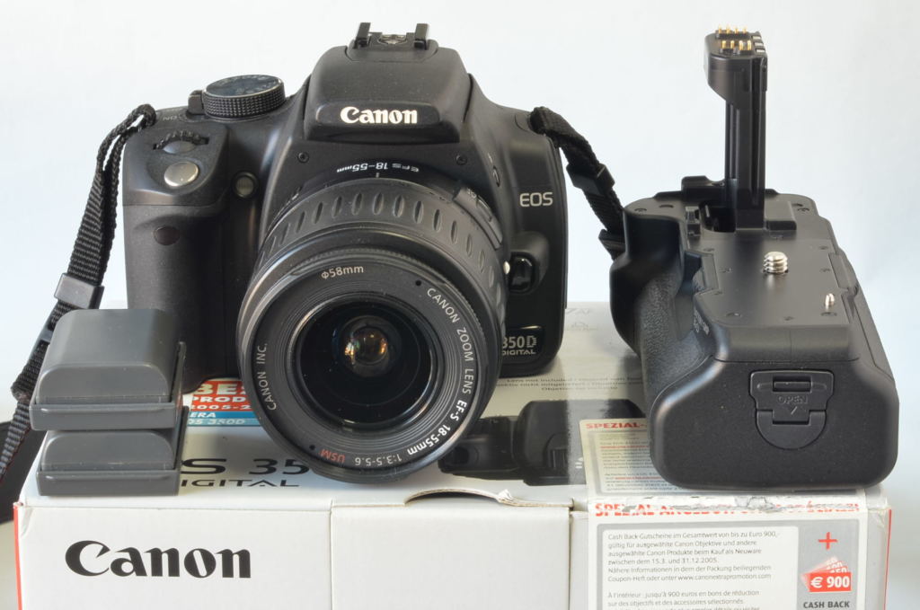 Canon EOS 350D Digital – Kit Completo con impugnatura, portabatteria e obiettivo EF-S 18-55mm f/3.5-5.6 USM