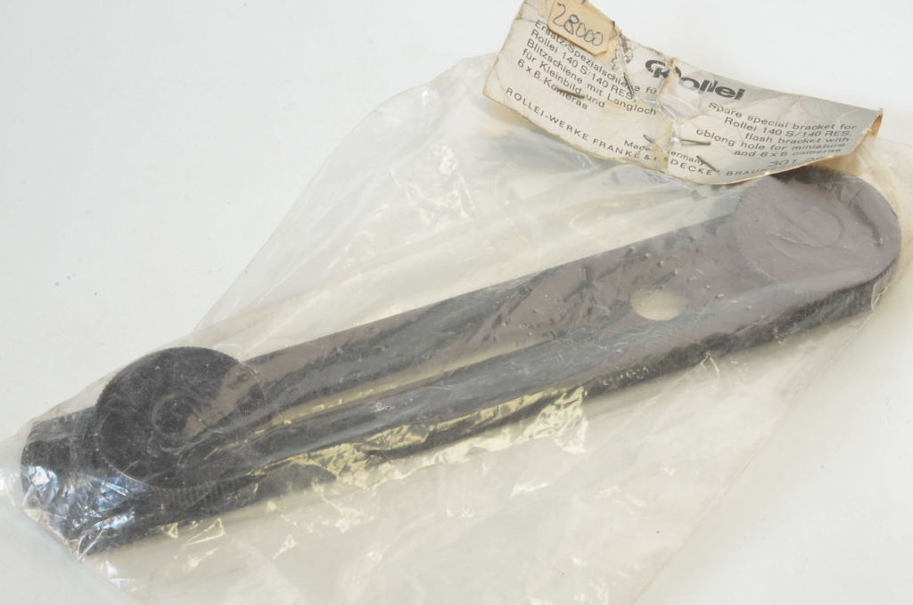 Staffa di supporto originale Rollei, ancora sigillata nella sua confezione originale. Si tratta di un ricambio specifico progettato per i flash Rollei 140 S e Rollei 140 RES. La staffa presenta un foro allungato che permette di regolare la distanza di montaggio, rendendola adattabile sia a fotocamere 35mm che medio formato 6×6. Nuova, competa di […]