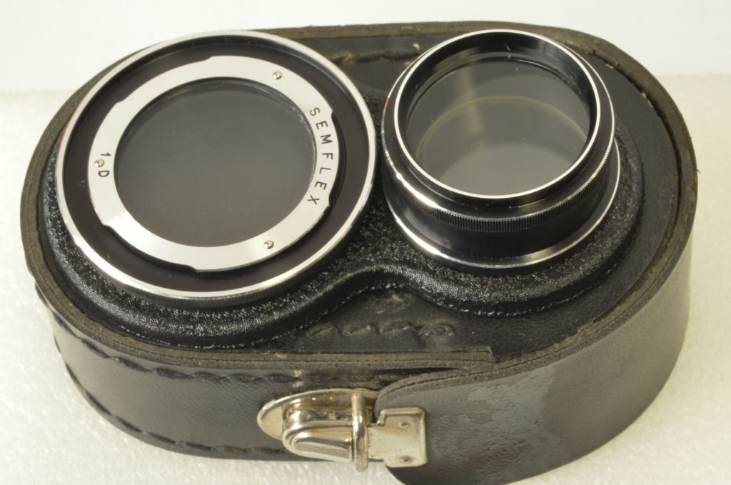 Set di lenti addizionali originali per fotocamere biottiche (TLR) Semflex. Si tratta di un accessorio vintage “Made in France” che permette di ridurre la distanza minima di messa a fuoco, ideale per ritratti stretti o fotografia ravvicinata (macro). Il set è composto dalla coppia di lenti (una per l’obiettivo di scatto e una per quello […]