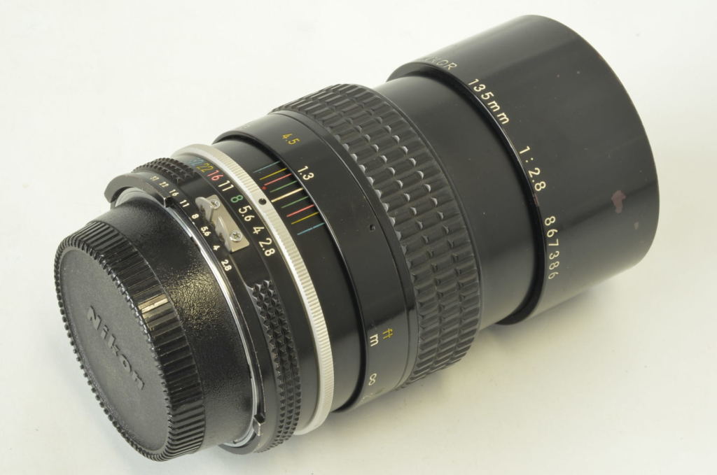 Tele Nikkor – Q 13.5cm f/3.5 per telemetro, il più lungo dei tele per Nikon a telemetro utilizzabile montato direttamente al corpo macchina e non sulla reflex housing. Molto bello, completo di tappi e paraluce.
