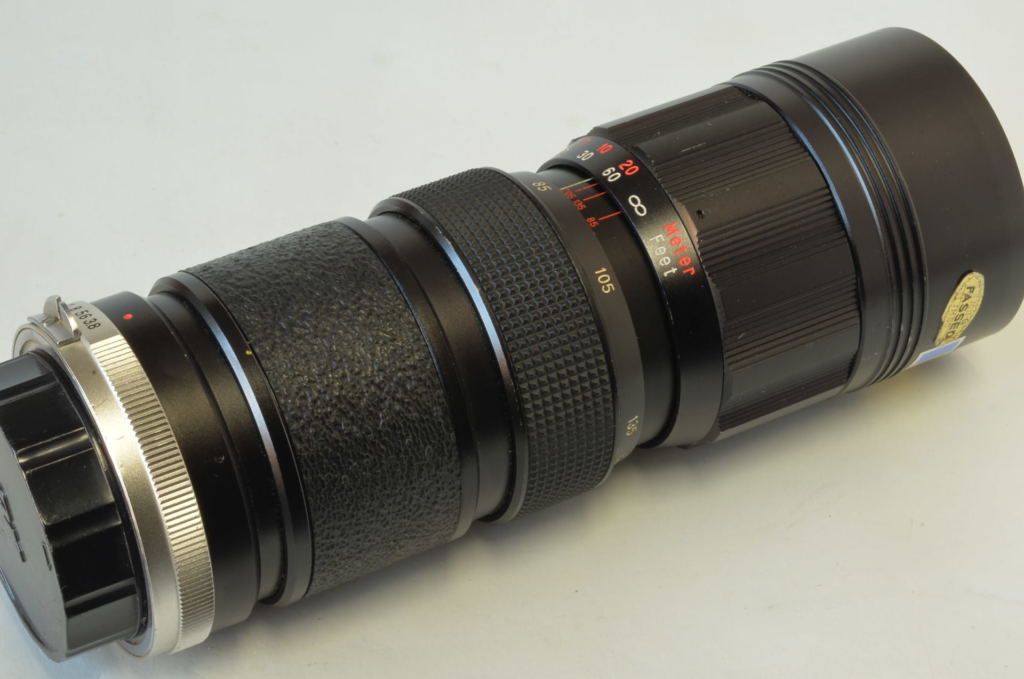 Ottica tele prodotta da Canon a partire dal 1975, con schema ottico composto da 5 elementi in 5 gruppi. L’apertura massima del diaframma a 2.8 lo rende un obiettivo molto luminoso, mentre il rivestimento multistrato Canon S.S.C (Super Spectra Coating) riduce il flare e migliora il contrasto e la resa dei colori. In buone condizioni.