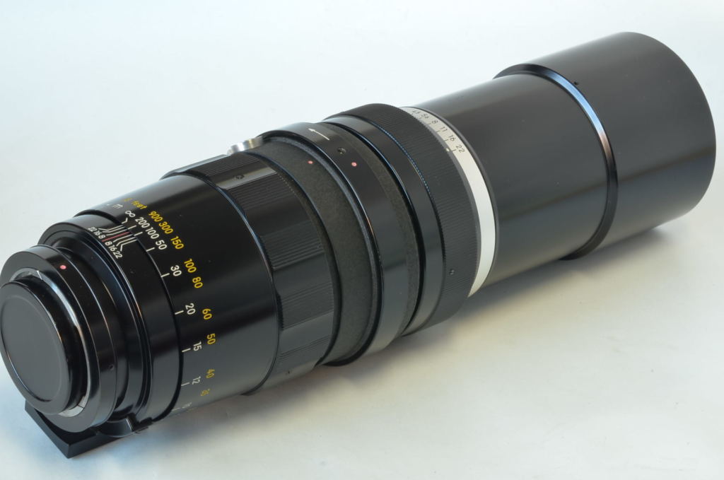 Teleobiettivo prodotto tra la fine degli anni Settanta e l’inizio degli anni Ottanta dalla casa giapponese Makinon. La struttura in metallo robusta e resistente garantisce resistenza nel tempo e il peso di 500 grammi lo rende abbastanza maneggevole per essere un teleobiettivo. In buone condizioni, innesto Fuji AX.