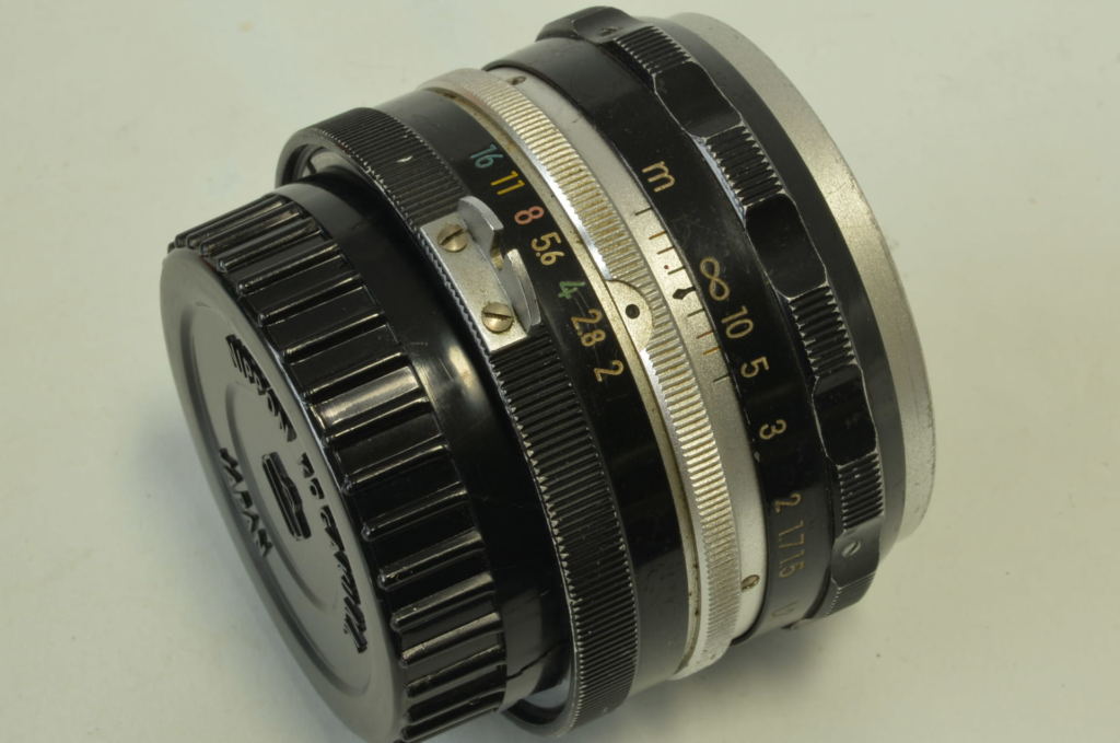 Bellissimo Nikkor – PC 8.5cm f/2, uno dei primi prodotti con chiusura diaframma fino a f/32, costruzione di 5 lenti, con trattamento Coated. Qui in versione cromata. Un gioiello della produzione obiettivi per Nikon a telemetro.