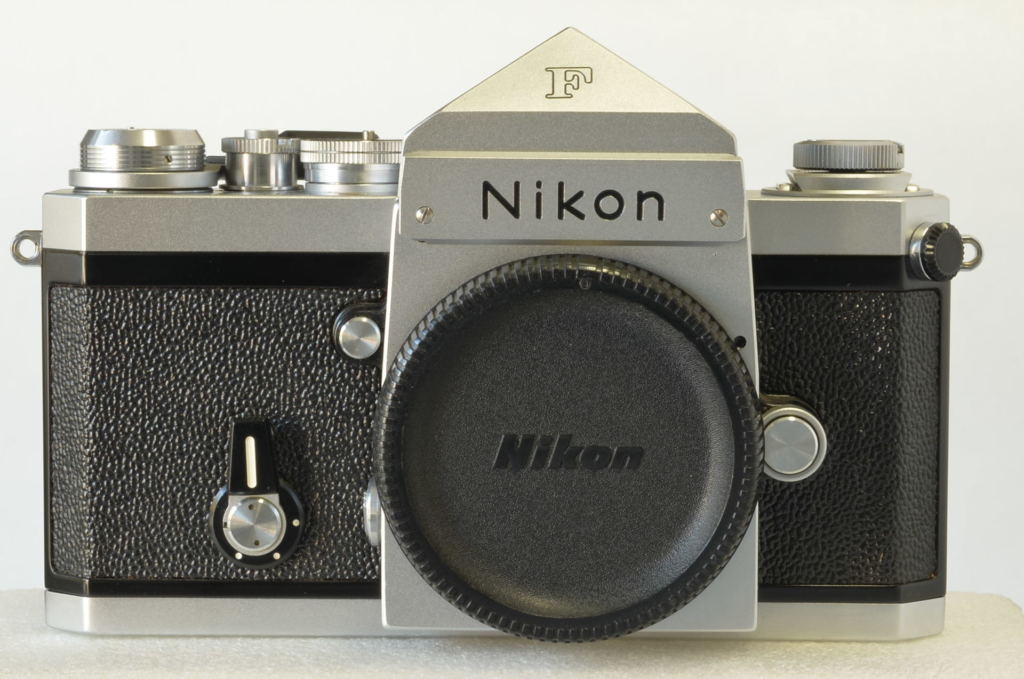 L’autentico mito Nikon nasce e si consolida con il modello F, la prima reflex 35mm. Modello privo di mirino Photomic ma con prisma semplice. È la stessa fotocamera utilizzata nel film Blow Up di Michelangelo Antonioni, tra le mani del fotografo Thomas (David Hemmings). Molto bella, guarnizione battuta specchio sostituita, perfettamente funzionante, tappo originale.