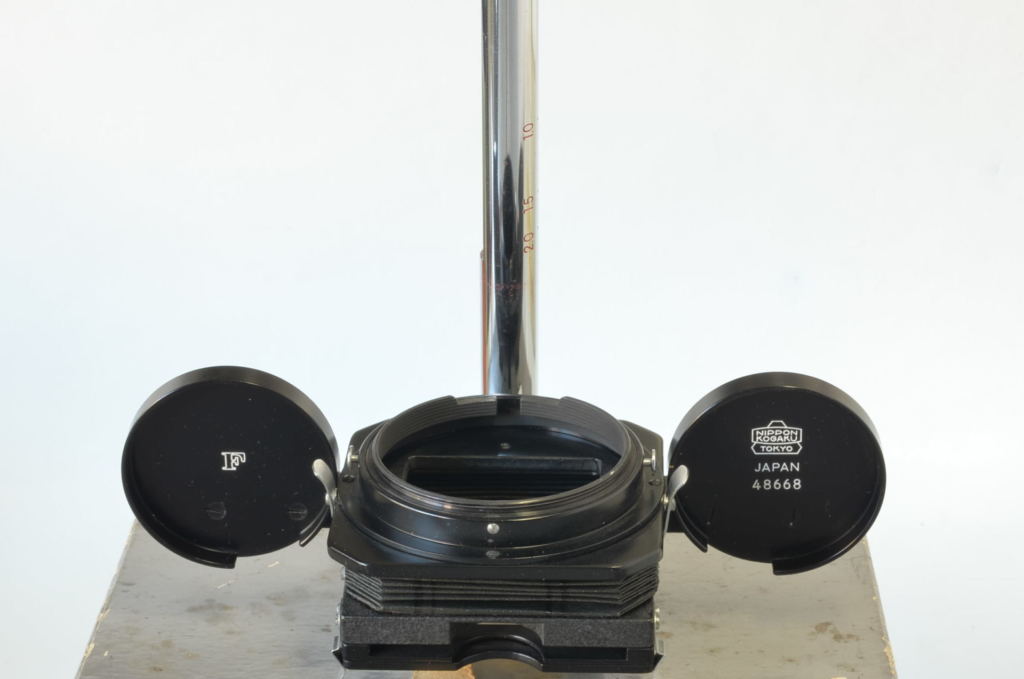 Apparecchio per macrofotografia di ottima fattura, semplice e pratico da utilizzare. Ultimo soffietto di estensione prodotto dal marchio Nikon negli anni ’80, tuttora a catalogo. Montato su una slitta di messa a fuoco permette un’estensione continua compresa tra 48mm e 208mm. I supporti anteriore e posteriore sono indipendenti. Molto bello.