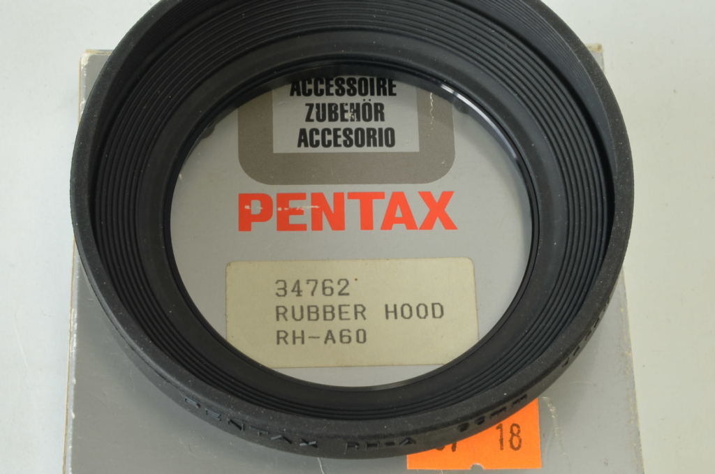 Paraluce originale Pentax RH-A 60mm (codice prodotto 34762). Questo accessorio è realizzato in gomma di alta qualità, progettato per essere resistente e pieghevole, ideale per proteggere l’obiettivo da riflessi indesiderati (flare) e urti accidentali senza ingombrare nella borsa fotografica. Nuovo.