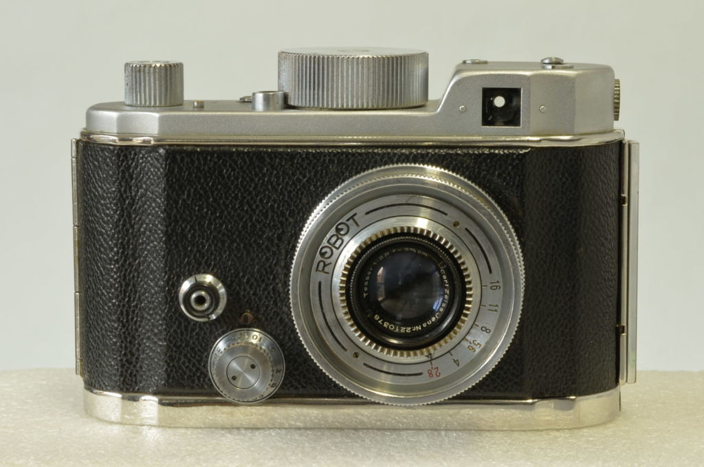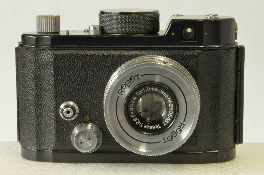 Storica fotocamera prodotta dalla casa Tedesca Otto Berning & Co alla fine degli anni Trenta, famosa per il suo meccanismo di avanzamento a molla, che permetteva scatti in sequenza senza dover ricaricare manualmente dopo ogni foto. Dotata di obiettivo Carl Zeiss Jena Tessar 3,75cm f/2.8. A quell’epoca per le misure non intere era consuetudine utilizzare […]
