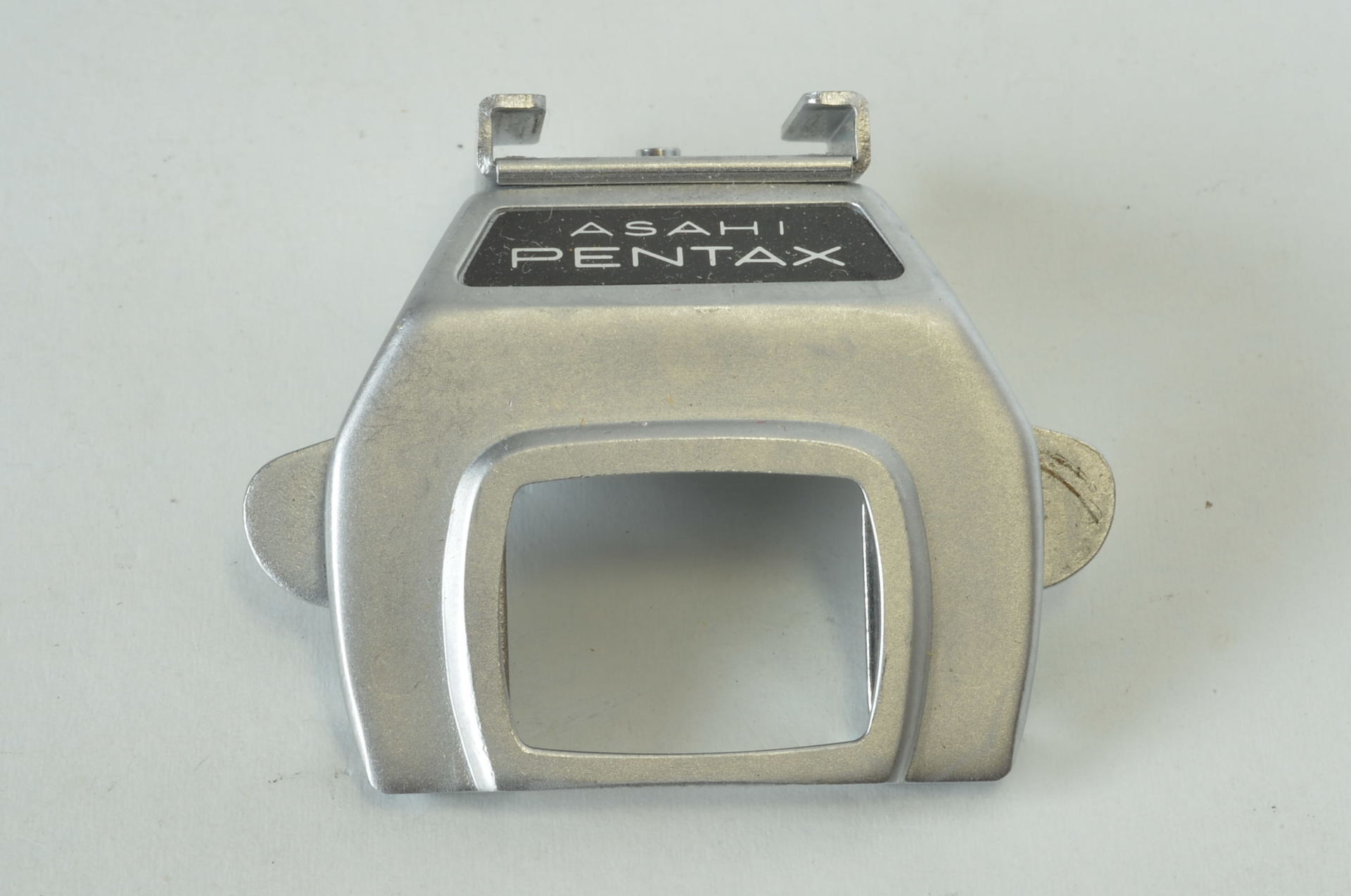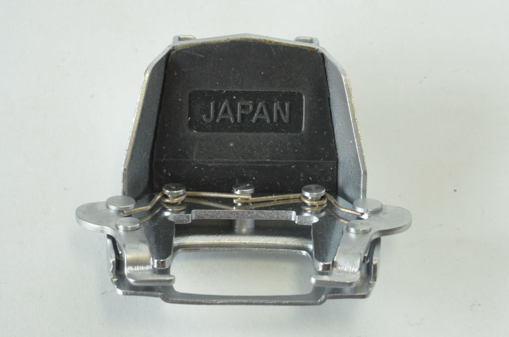 Accessorio per il sistema Asahi Pentax Spotmatic: l’attacco a slitta originale (Accessory Shoe). Questo componente metallico si aggancia saldamente al prisma del corpo macchina, fornendo una slitta “fredda” (cold shoe) standard per il montaggio di flash esterni, trasmettitori radio per studio o altri accessori fotografici. Molto bella.