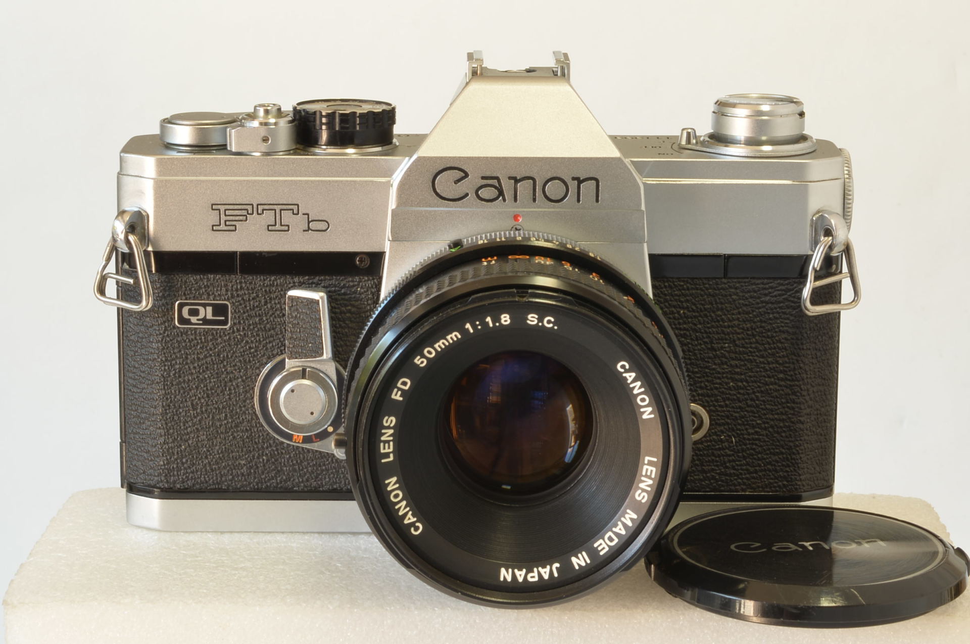 Sorella minore della professionale F1, la FTb esce contemporaneamente a questa nel marzo del 1971 come aggiornamento della precedente Canon FT. A differenza di quest’ultima monta i nuovi obiettivi FD, che, pur mantenendo la medesima baionetta, introducono il simulatore del diaframma per consentire la misurazione a tutta apertura. Molto bella, perfettamente funzionante, dotata del suo obiettivo originale, il Canon 50mm f/1.8 FD S.C, guarnizioni sostituite. Completa di tappi originali e manuale di istruzioni in italiano.