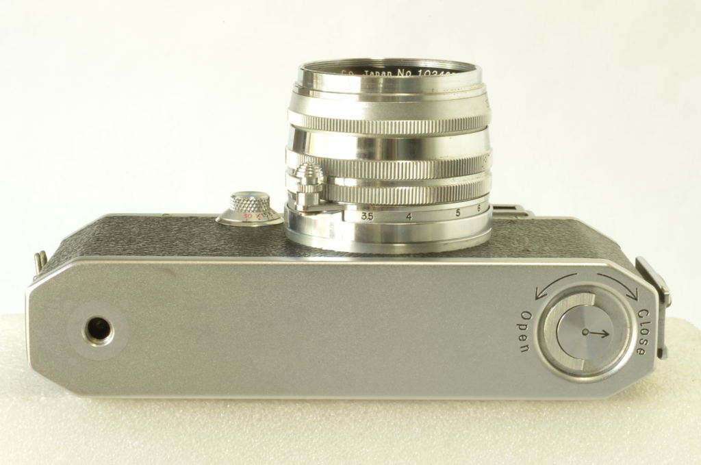 Bellissima fotocamera Canon a telemetro IV SB2 prodotta all’incirca nel 1955. Come le altre fotocamere a telemetro del marchio giapponese, monta obiettivi con passo a vite 39×1. In questo caso è corredata del 50mm f/1.8 Serenar.