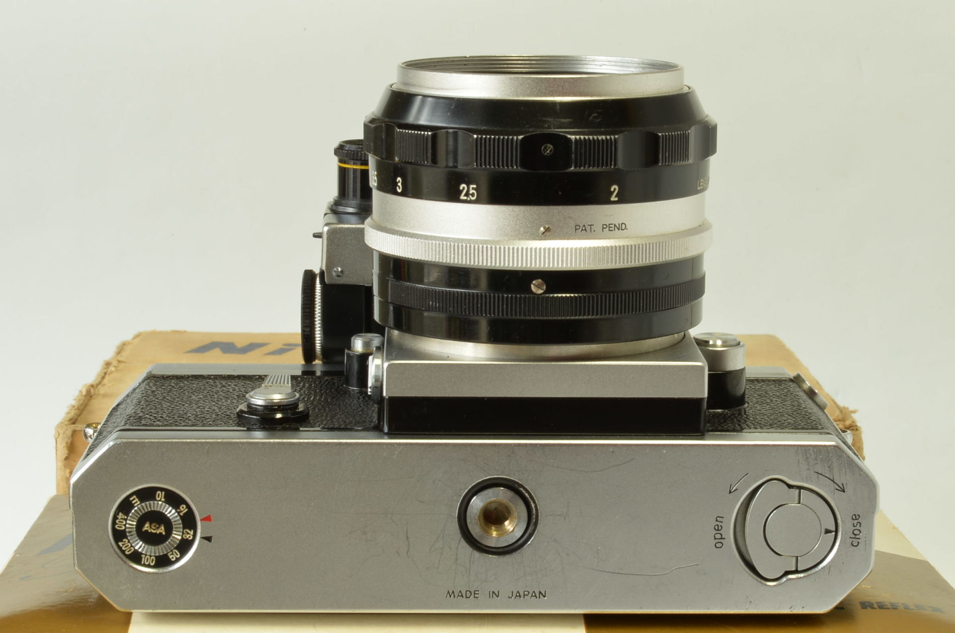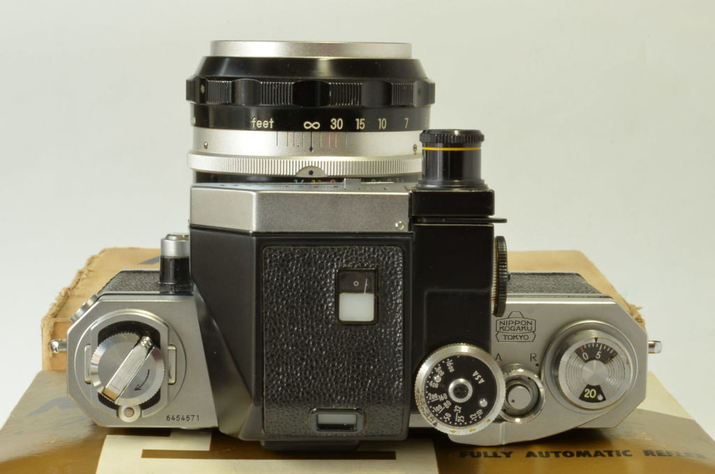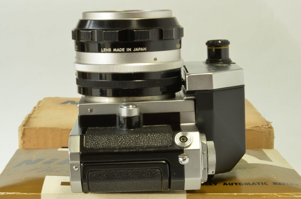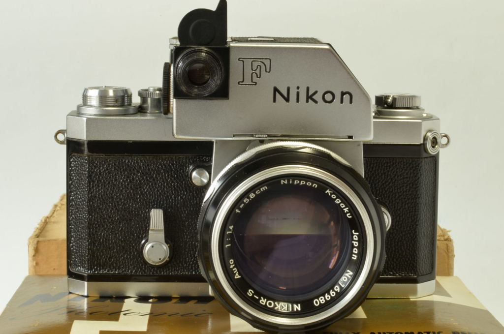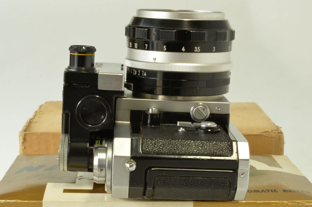 Interessante Nikon F Photomic cromata, completa di obiettivo Nikkor 5.8 cm F/1.4, borsa pronto originale, doppio imballo e istruzioni. Corpo in buonissime condizioni, esposimetro prima versione con accensione a bandiera, funzionante ma non garantiamo la corretta lettura. Obiettivo molto bello, privo di funghi e non modificato. Fotocamera prodotta alla fine del 1961.