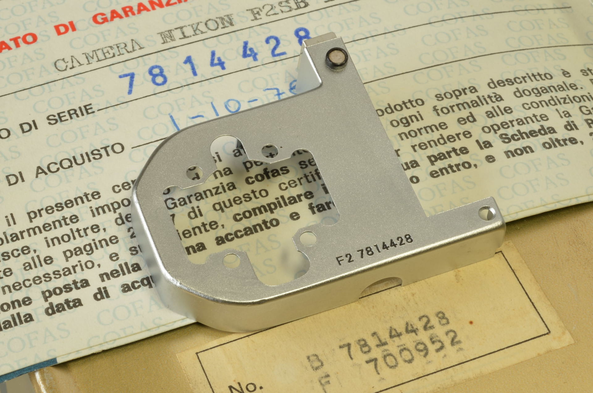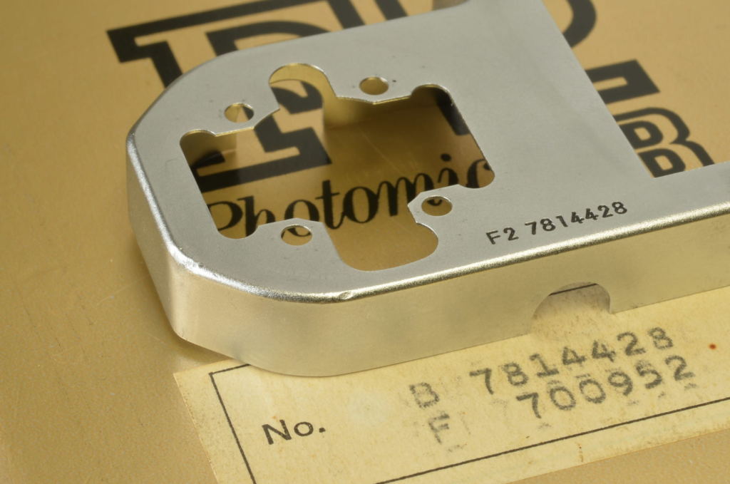 Fotocamera reflex Nikon F2 SB di sicuro interesse per i collezionisti perché rimasta in produzione per breve tempo in quantità relativamente ridotte. Dotata di mirino Photomic DP-3. E’ il primo apparecchio che presenta cellule di misurazione esposimetrica al silicio. Esemplare molto vicino al nuovo, il carter lato matricola è stato sostituito per piccoli segni nell’originale, operazione eseguita molti anni fa, poichè per circa 30 anni è rimasta nella collezione di un cliente. La parte originale è presente nell’imballo che riporta la stessa matricola. Completa di scatola, istruzioni originali e garanzia Cofas.