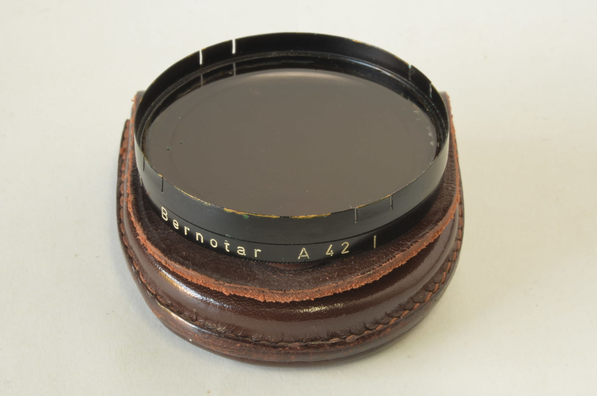 Filtro ND prodotto da Zeiss diametro 42mm denominato Bernotar, in onore del suo inventore prof. Bernauer. Dopo la Seconda Guerra Mondiale, l’azienda Carl Zeiss fu divisa in: Zeiss Ikon, che operava in Germania Ovest e che continuò la produzione con il nome “Zeiss Ikon” , Zeiss Jena in Germania Est e Zeiss Opton. La dicitura “Zeiss Opton” fu specificamente utilizzata per le lenti e gli accessori prodotti a Oberkochen, Germania Ovest, in un periodo di transizione, principalmente dalla fine degli anni ’40 all’inizio degli anni ’50. In questo caso il filtro riporta la dicitura “Zeiss Opton”. In discrete condizioni, completo di custodia originale.