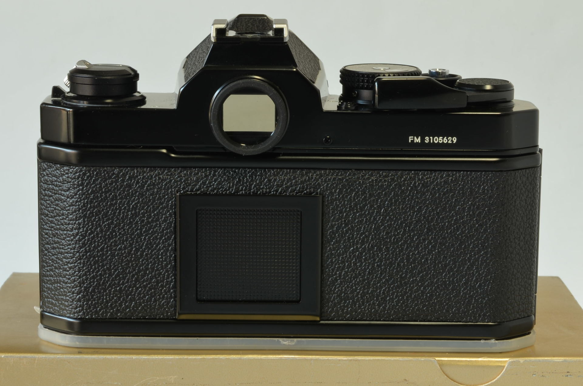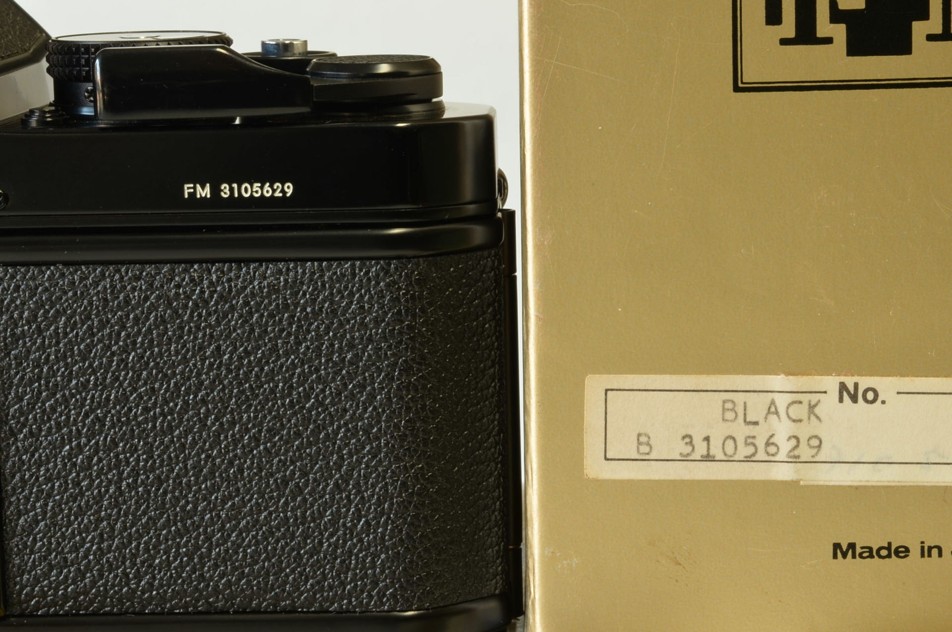 Seconda versione della storica Nikon FM, qui nera, camera fortunatissima e molto affidabile prodotta dal 1977 al 1982, con sincro flash 1/125 e tempi di esposizione da 1 secondo a 1/1000. Indicazione esposimetrica a diodi verticali, quindi visibile in qualsiasi condizioni di luce. Caratteristica importante che la differenzia dalla successiva FM2 è la possiblità di utilizzare ottiche pre AI grazie al simulatore del diaframma snodabile. Come nuova, imballo e istruzioni originali. Guarnizioni sostituite.
