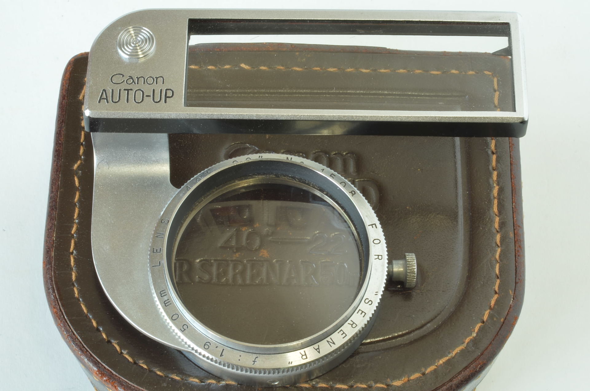 Lente addizionale Canon Auto-Up 40-22 per Serenar 50mm f/1.9 come nuova, completa di custodia originale in pelle.