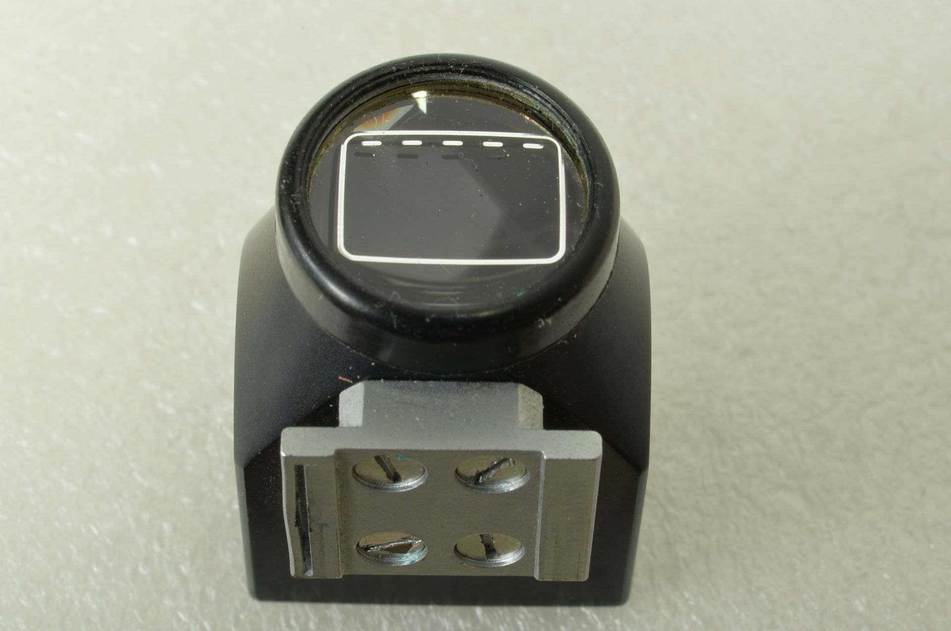 Versione in metallo del mirino Leica 28mm nero. Molto bello, completo di custodia originale, come spesso accade in questa versione è presente un leggero scollamento ottico, perfettamente fruibile.