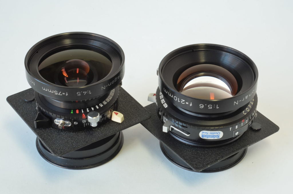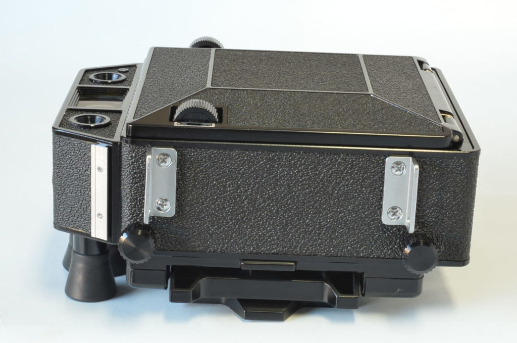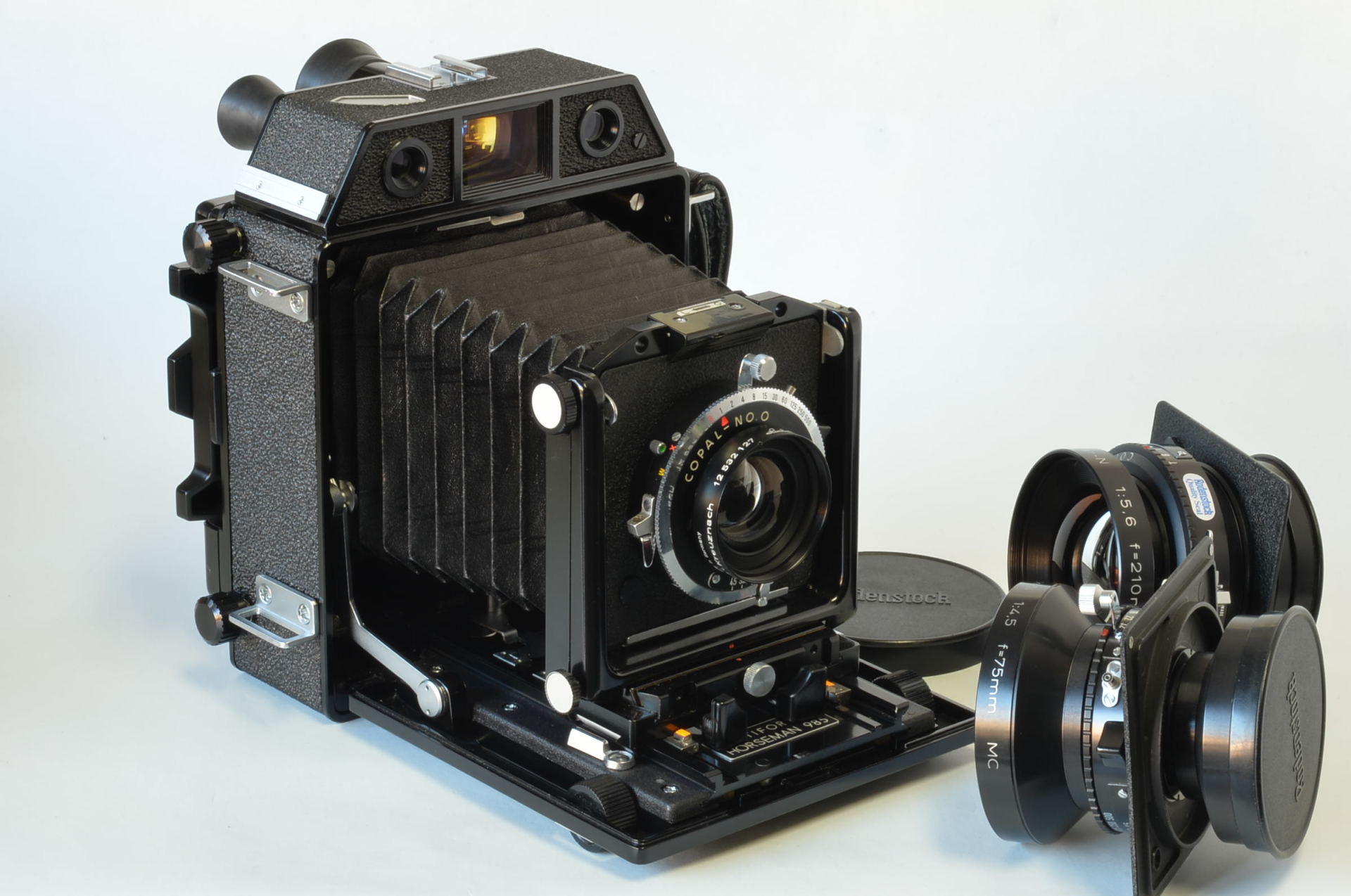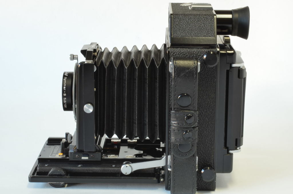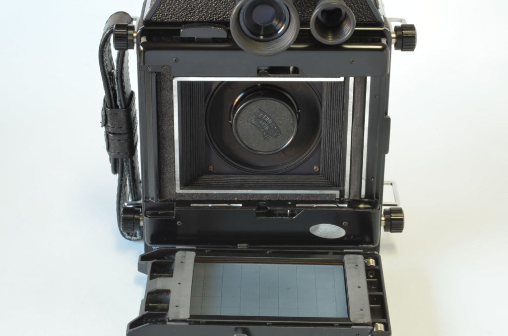 Interessante fotocamera telemetro prodotta da Topcon negli anni 70, può utilizzare dorsi formato 6×9-6×7. Molto bella, completa di 3 obiettivi come nuovi: Rodenstock N 75mm F4.5, Schneider Linhof Symmar S 100mm F5.6, Rodenstock Sironar-N 210mm F5.6.