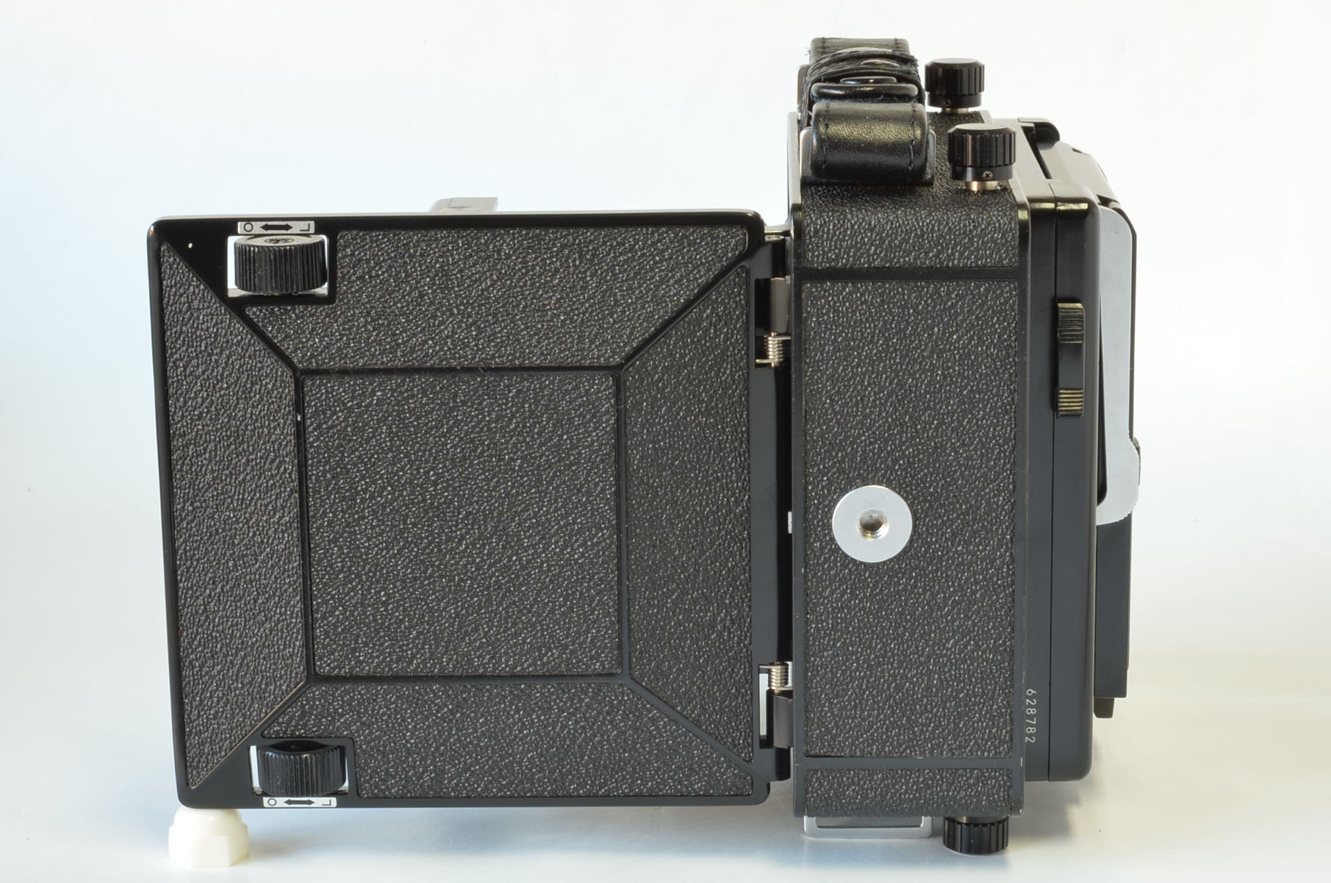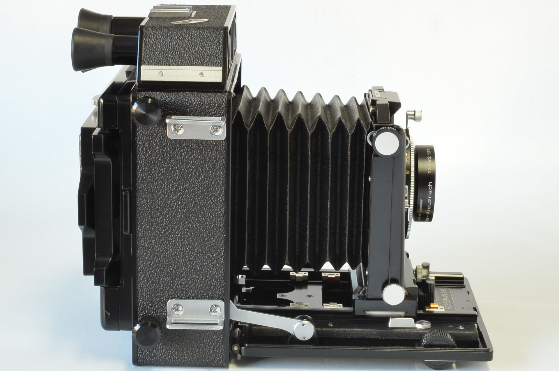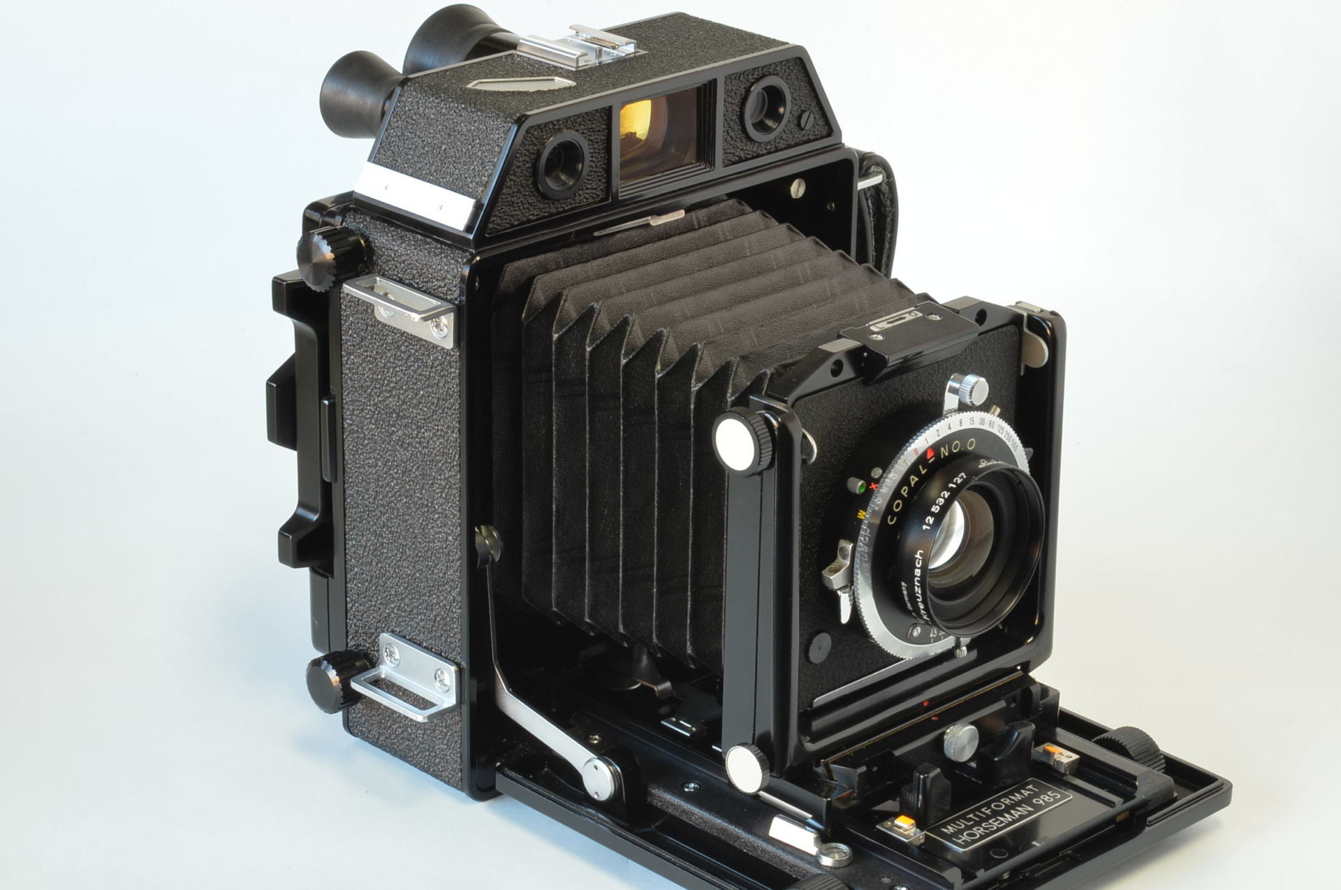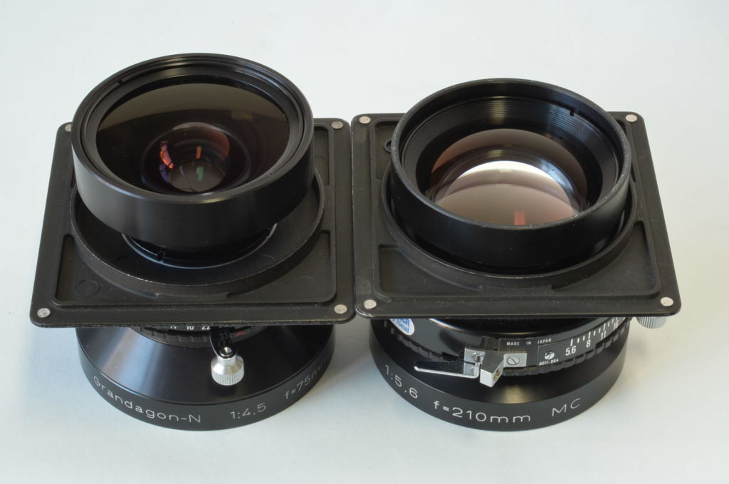 Interessante fotocamera telemetro prodotta da Topcon negli anni 70, può utilizzare dorsi formato 6×9-6×7. Molto bella, completa di 3 obiettivi come nuovi: Rodenstock N 75mm F4.5, Schneider Linhof Symmar S 100mm F5.6, Rodenstock Sironar-N 210mm F5.6.