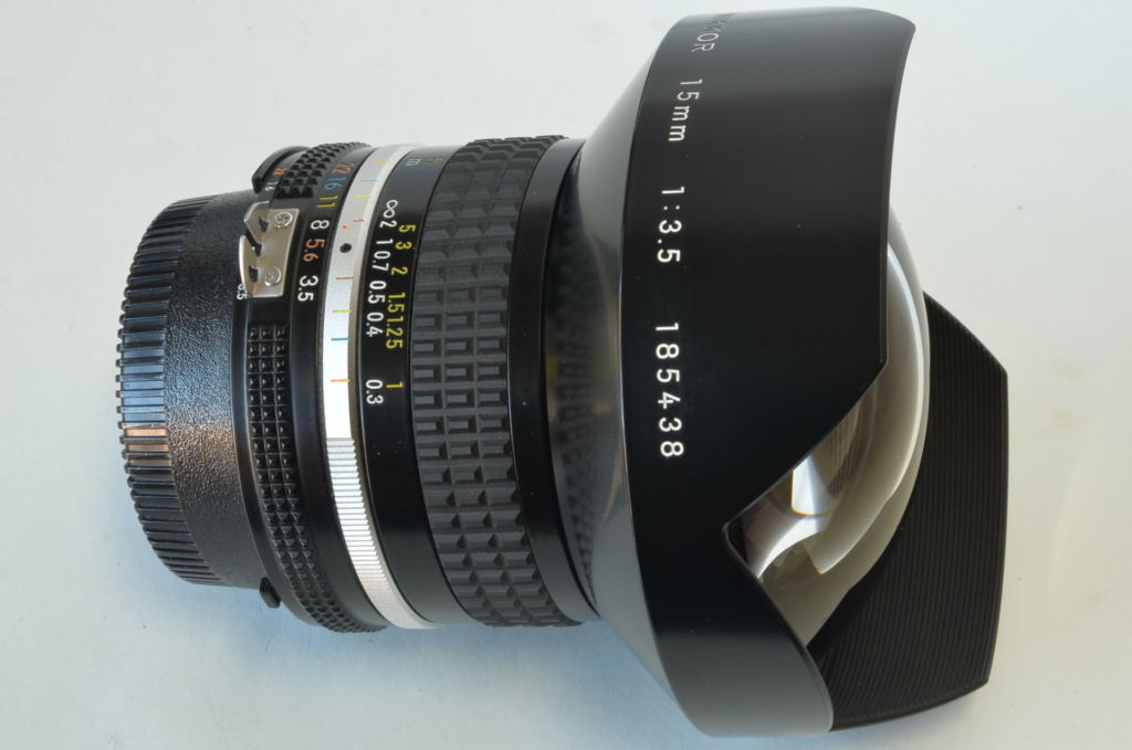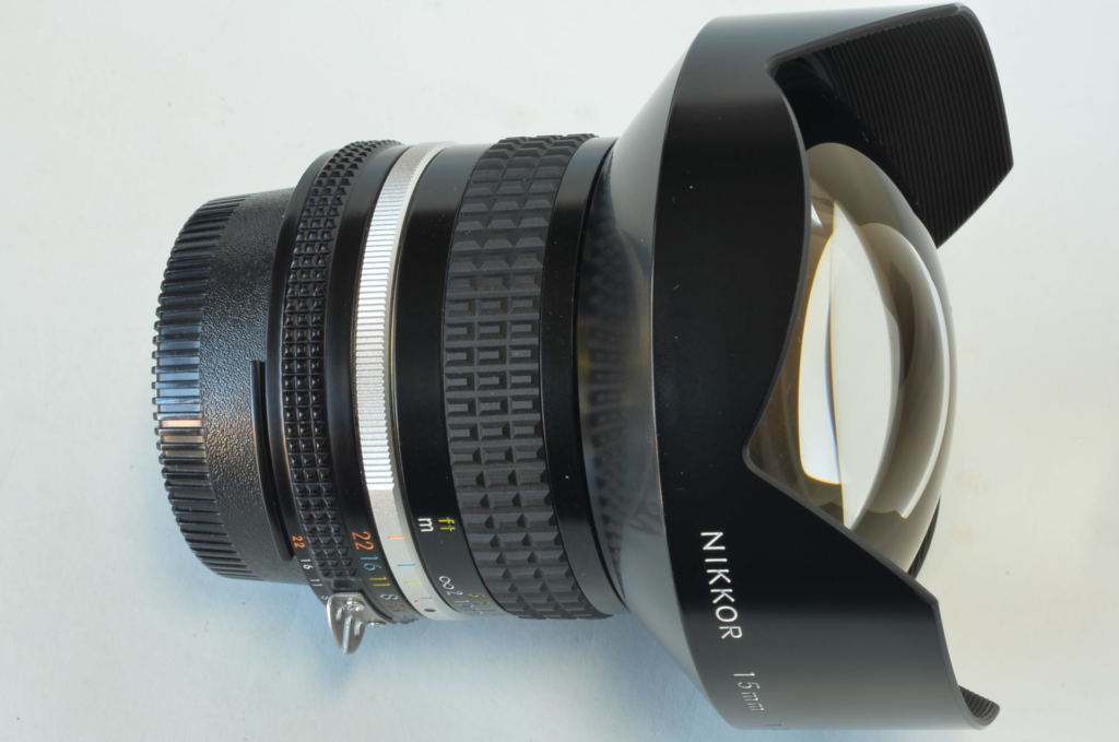 Bellissimo obiettivo superwide Nikkor 15mm f/3.5 AIS, angolo di campo 110°, manual focus. Presentata nel 1982 la versione AIS. Come nuovo, completo dei tre filtri originali e relativa custodia.