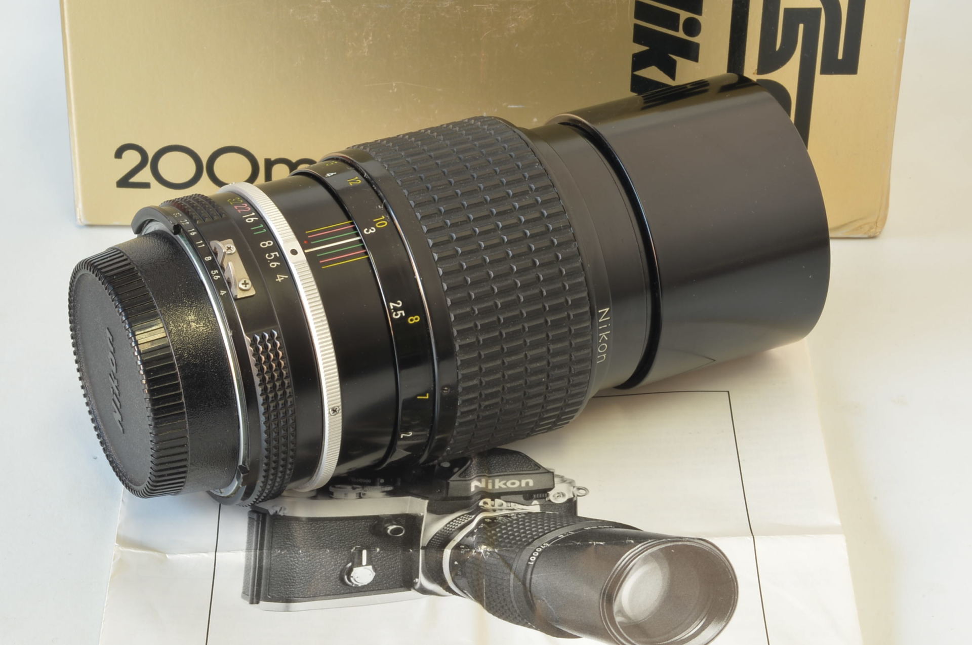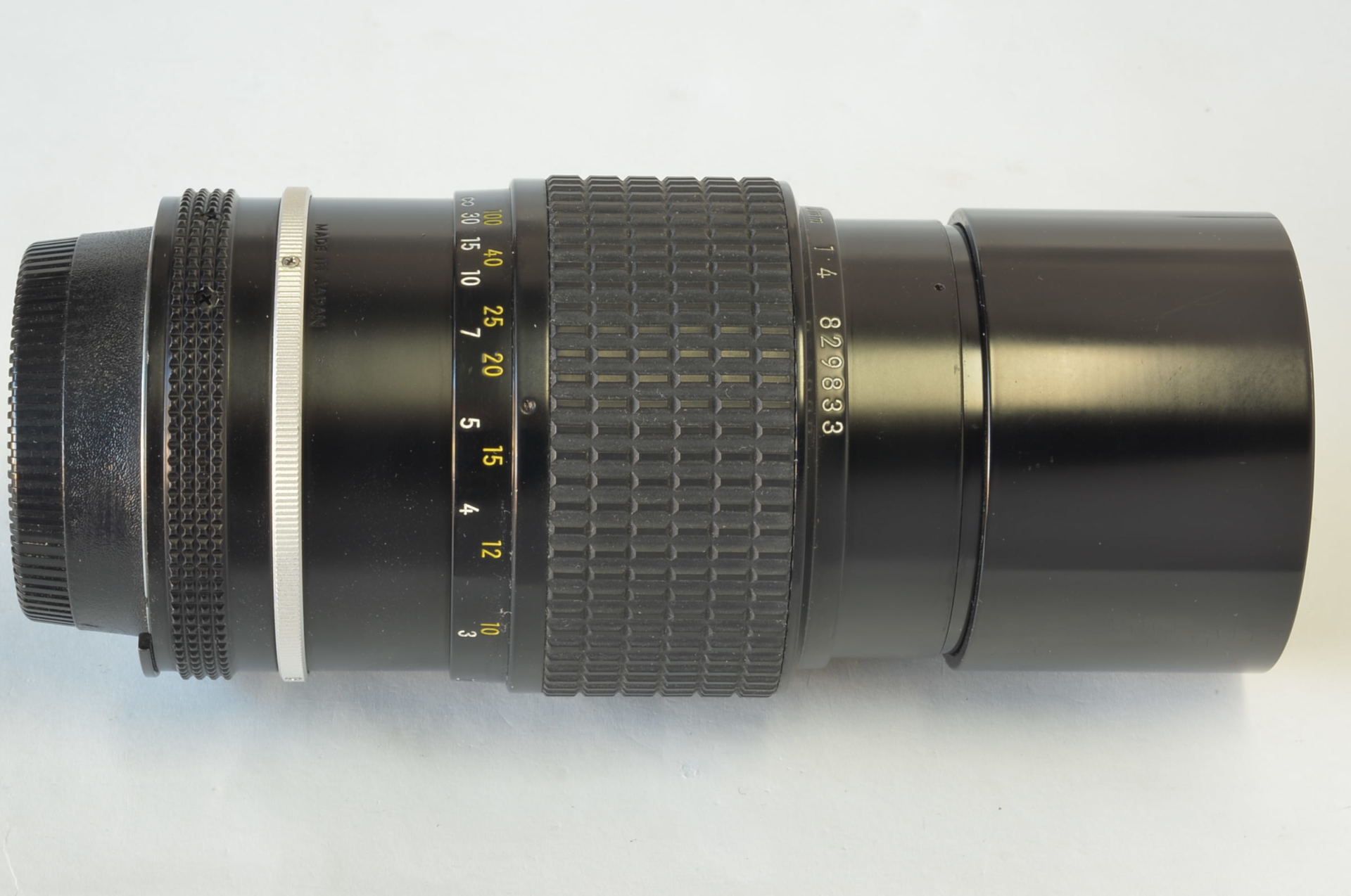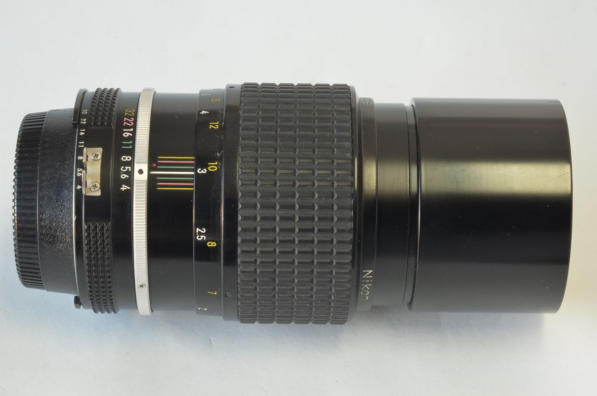Bellissima ottica certamente sottovalutata per concorrenza con il più noto Nikkor 180mm f/2.8 ED. Chiusura diaframma fino a f/32, messa a fuoco minima a 2 metri, dotato di comodo paraluce telescopico. Versione AI, bellissimo, completo di scatola originale, garanzia e istruzioni.