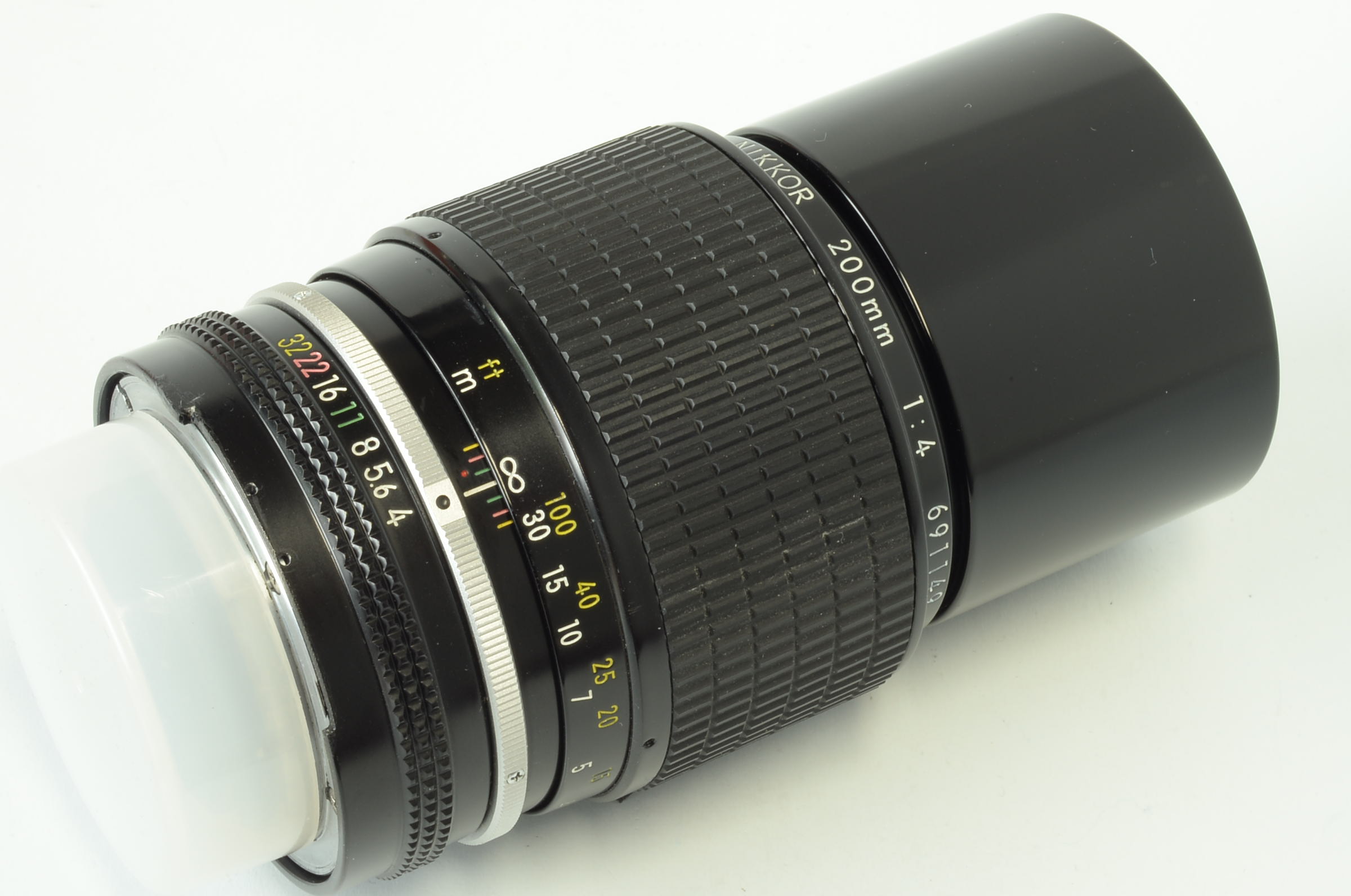 Versione PreAI del Nikkor 200mm f/4, apparsa sul mercato nel 1977. Alleggerito nel peso rispetto alle versioni precedente e migliorato nella costruzione ottica. Otticamente e meccanicamente perfetto, modificato AI.