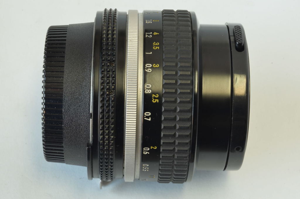Prodotto nel 1979 circa, è uno degli obiettivi più apprezzati e diffusi del sistema Nikon. Schema ottico di 7 lenti in 6 gruppi. La costruzione leggera e le dimensioni ridotte ne fanno un’ottica versatile e pratica all’uso. La conversione al sistema AI portò a un nuovo restyling: la scala delle profondità di campo ritornò sull’anello cromato di montaggio, guadagnando ulteriormente in termini di peso e compattezza. Adatto alle riprese di ritratti a figura intera, raggiunge l’apice della nitidezza ai diaframmi compresi fra f/4 e f/11. Bello, completo di tappi.