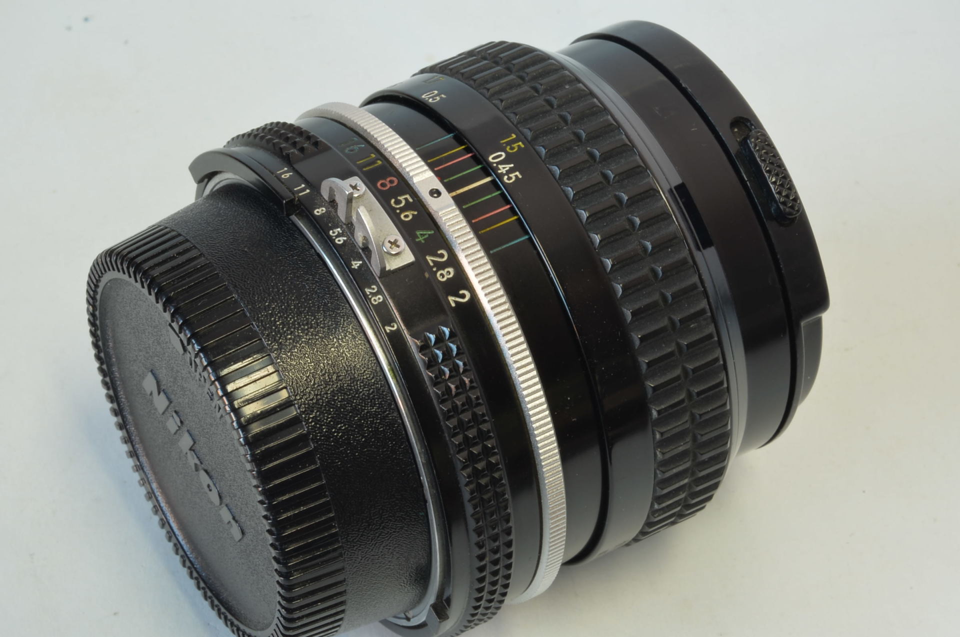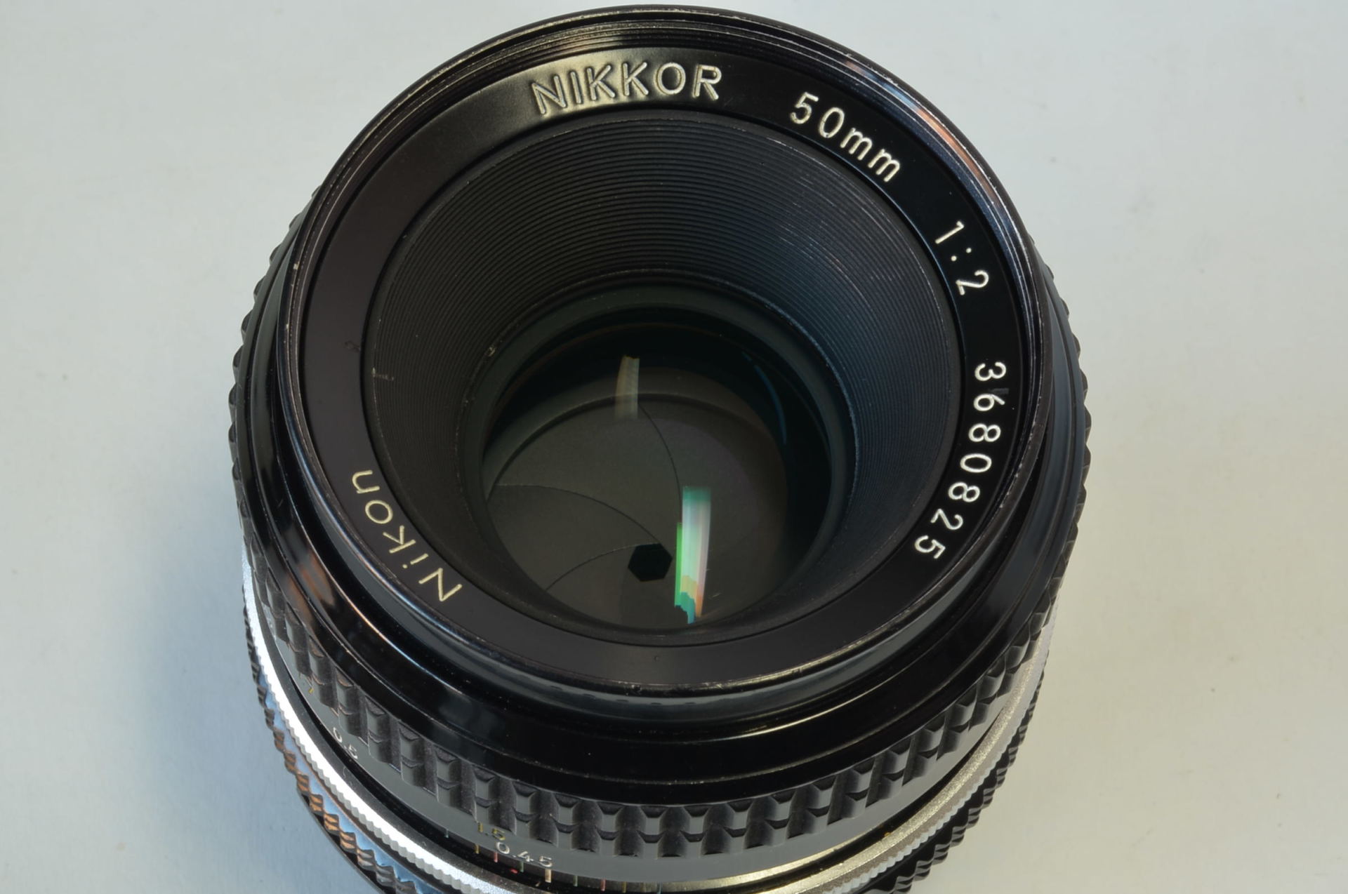 Ultima versione del Nikkor 50mm f/2 aggiornata nel marzo 1977. Perfetto otticamente e meccanicamente. Molto bello, completo di tappi originali.