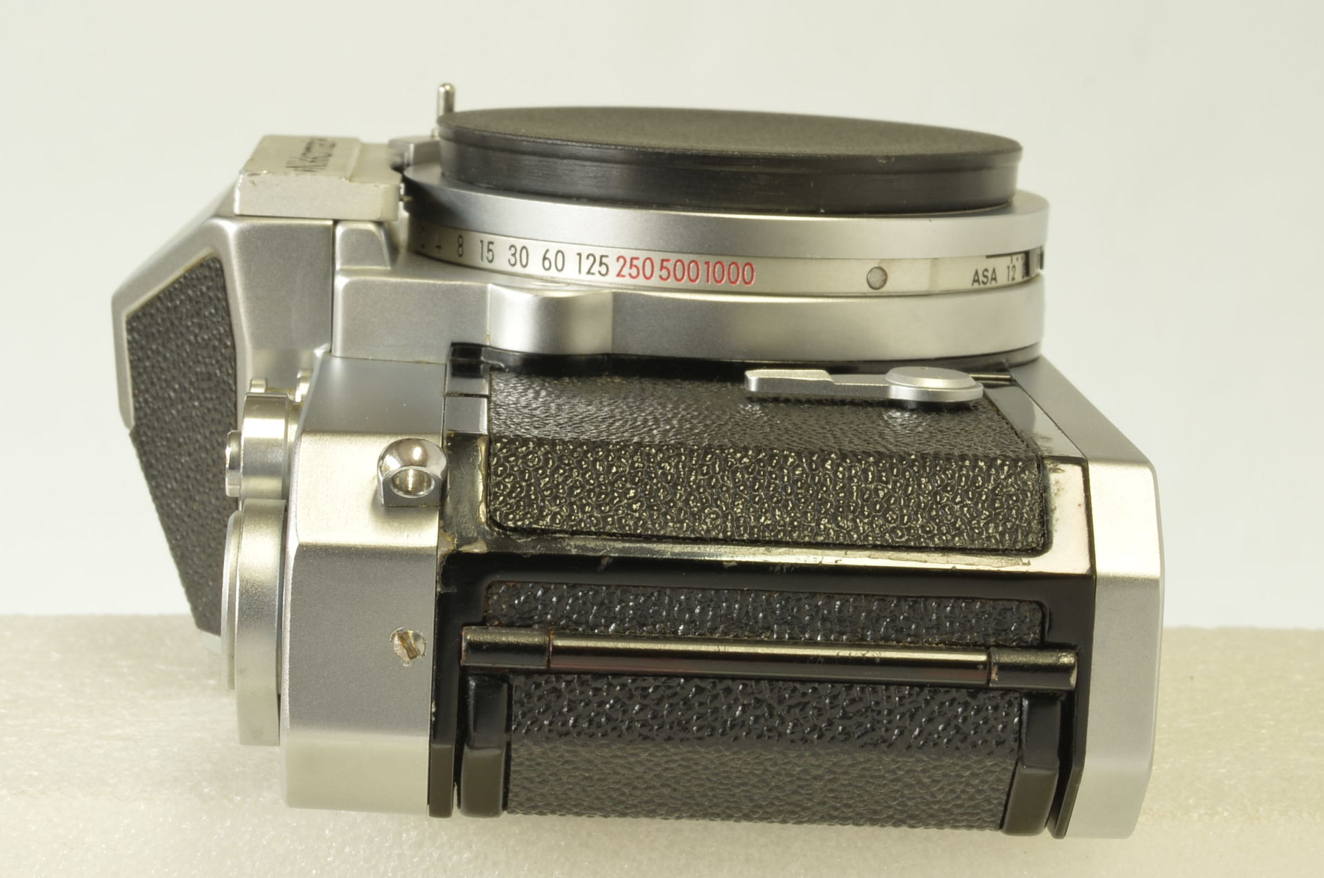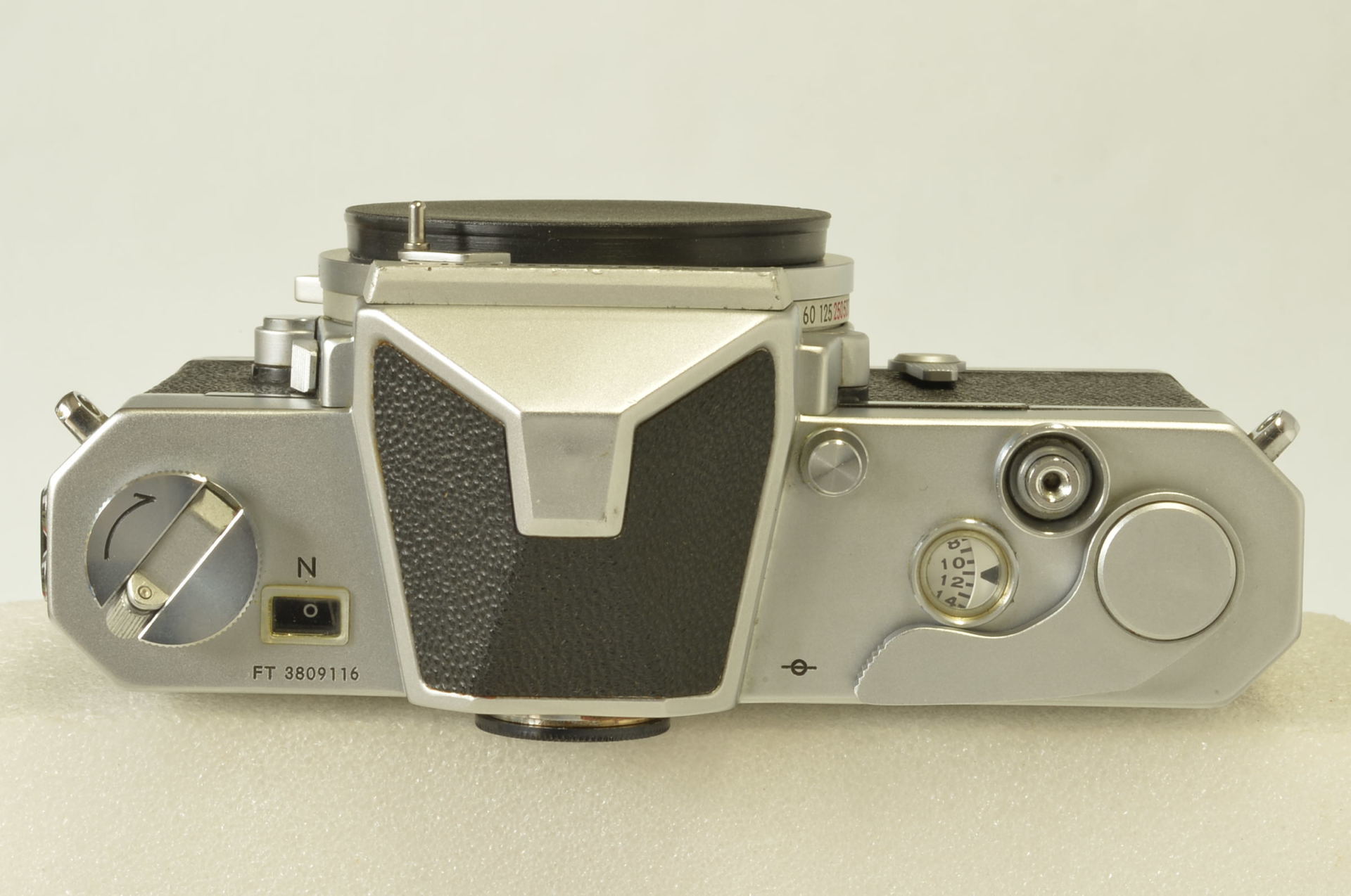 Bellissima prima versione della Nikkormat FTn, cromata, modello rinnovato successivo alla FT. Consente l’utilizzo delle ottiche Nikon non retrofocus grazie alla possibilità di bloccare lo specchio in posizione sollevata. Fotocamera completa, nulla da invidiare alla serie professionale F e F2. Funzionante, in buone condizioni, guarnizioni sostituite.