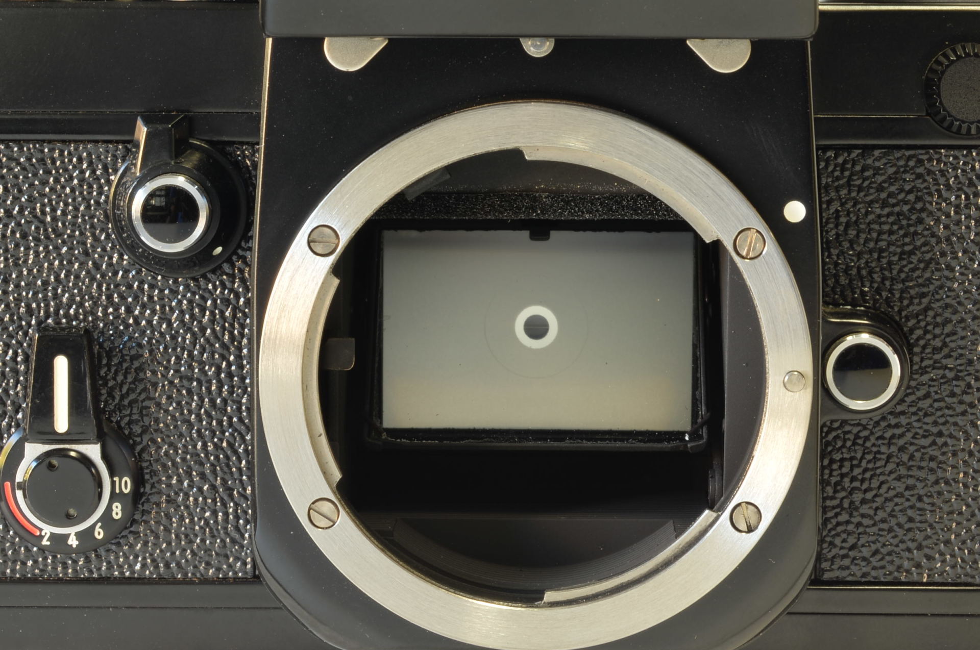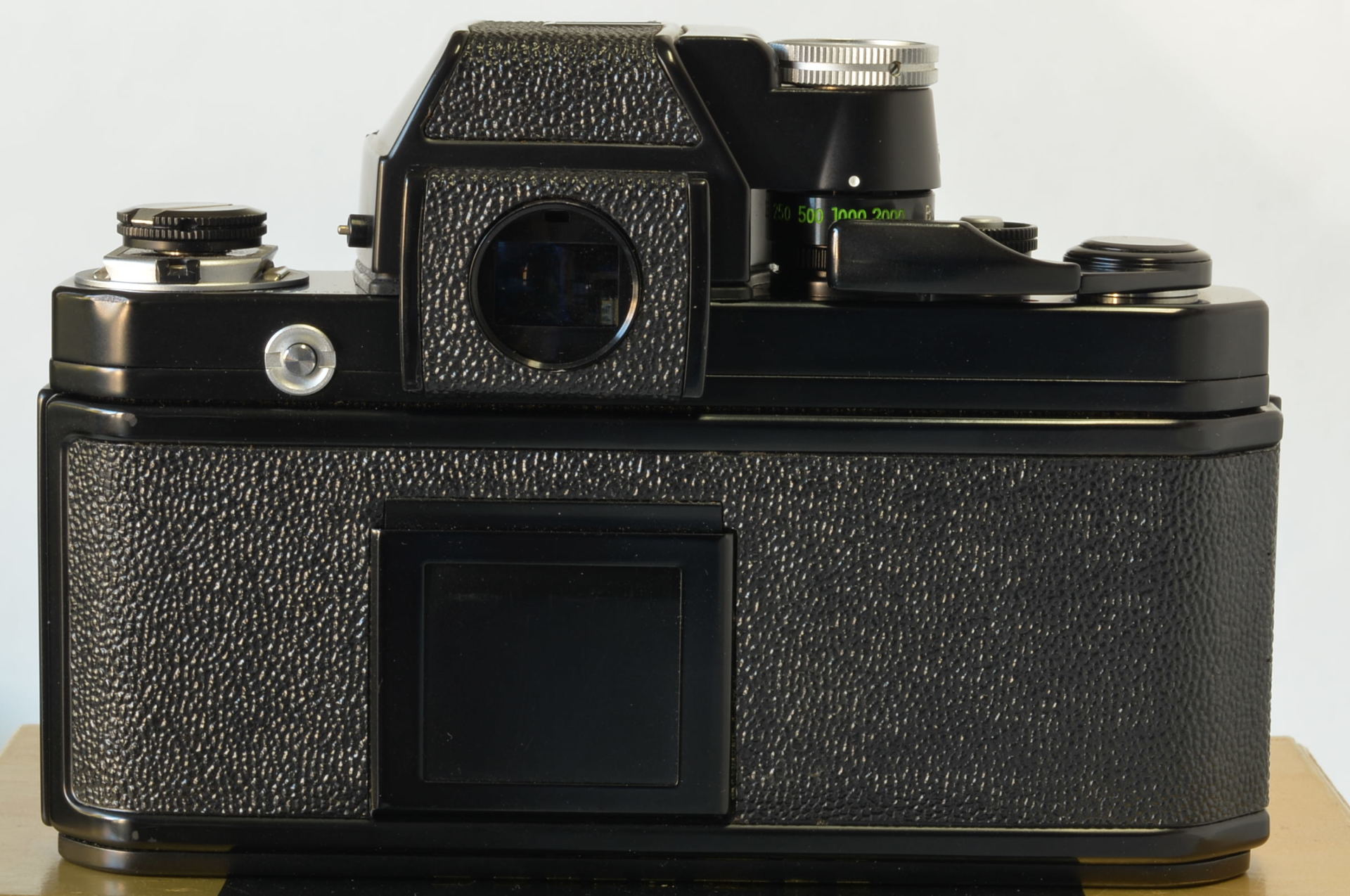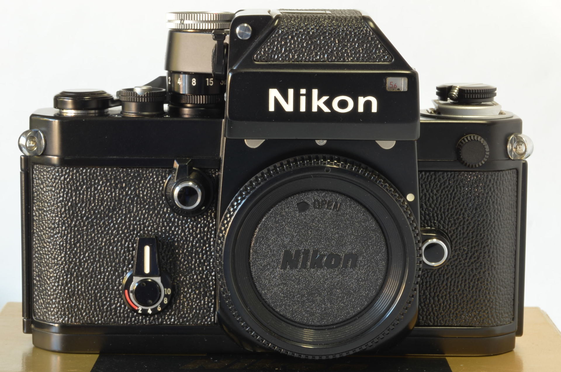 Fotocamera Nikon F2 Photomic DP-1 nella sua primissima versione, prodotta all’incirca nel luglio 1972. Con rivestimento in finta pelle stile Nikon F, più lucida e con trama diversa rispetto alla versione definitiva, viti a taglio e oculare Photomic leggermente diverso. Fotocamera bellissima, di difficilissima reperibilità in tali condizioni, presenta un piccolo urto sul lato sinistro in prossimità del numero seriale. Completa di imballo e istruzioni.