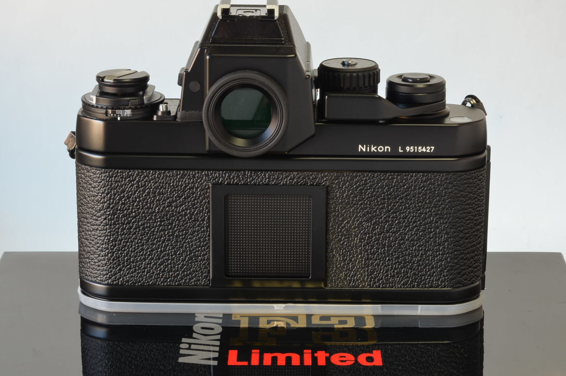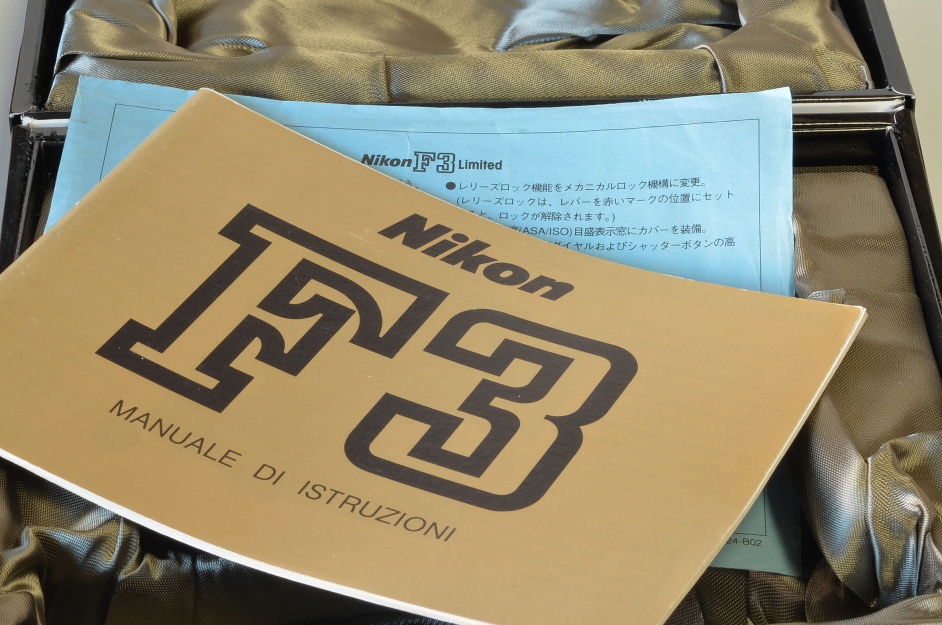 Versione speciale della leggendaria ammiraglia Nikon. La “Limited Edition” è sostanzialmente la versione destinata al pubblico della Nikon F3P (Press), il modello corazzato progettato per i fotoreporter professionisti. A differenza della F3 normale (che ha la presa flash sulla manovella di riavvolgimento), la Limited ha la slitta flash standard ISO direttamente sopra il mirino (DE-5) per una maggiore stabilità e protezione dagli agenti atmosferici. Il pulsante di scatto è gommato e rialzato, così come la ghiera dei tempi, per permettere l’uso anche con i guanti. Per migliorare la tropicalizzazione e l’impermeabilità, questo modello nasce senza la leva dell’autoscatto e senza il blocco esposizione frontale, proprio come richiesto dai reporter. A differenza della F3 P, è dotata di dorso standard e non dello scomodo MF6B. Nuova, inusata, completa di imballo e tracolla originale.