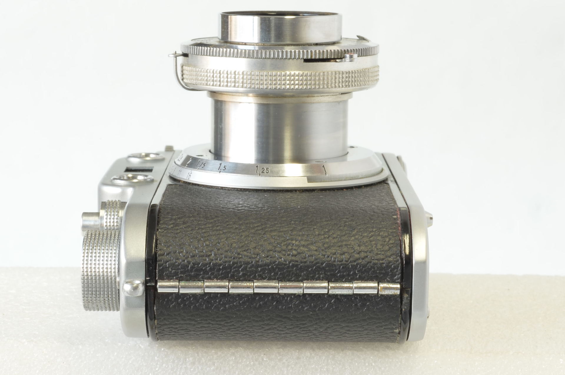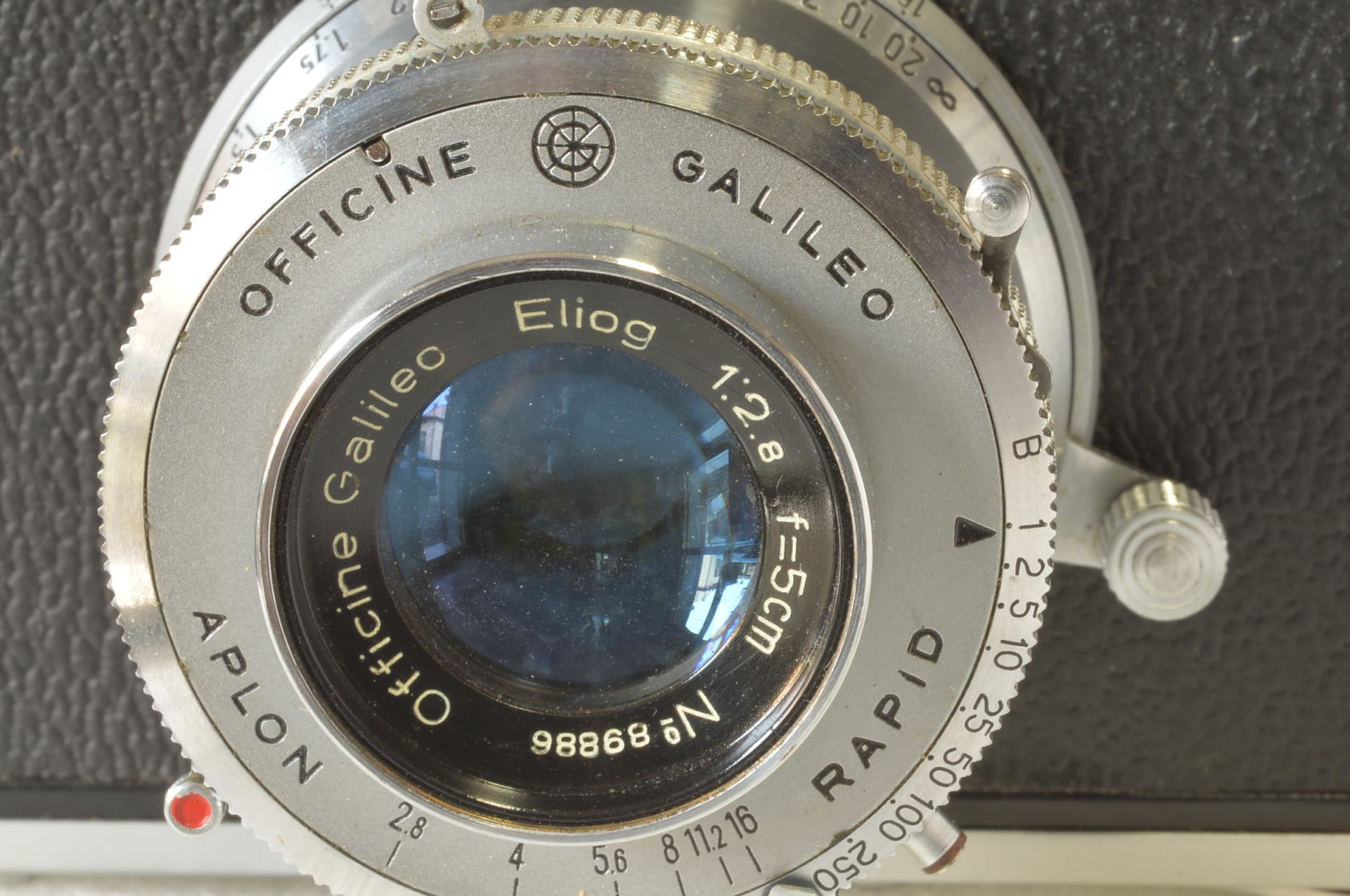 Fotocamera Officine Galileo Condor I dotata di Eliog 5 cm f/2.8 Officine Galileo. Questa macchina fotografica è nata nel 1948 dalle Officine Galileo, oggi importantissime industrie che operano nel settore aerospaziale ed astronomico. Sebbene la Condor I sia famosa storicamente come frutto della collaborazione tra Officine Galileo (produzione) e Ferrania (distribuzione e commercializzazione), l’esemplare in questione è una delle varianti marchiate esclusivamente Officine Galileo. Molto bella.