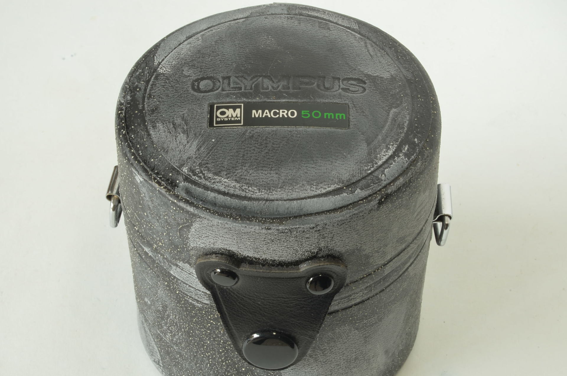 Obiettivo macro co attacco OM prodotto da Olympus circa nella metà degli anni Settanta, con schema ottico costituito da 5 elementi in 4 gruppi. Bellissimo, completo di custodia originale ma rovinata dal tempo e tappi.