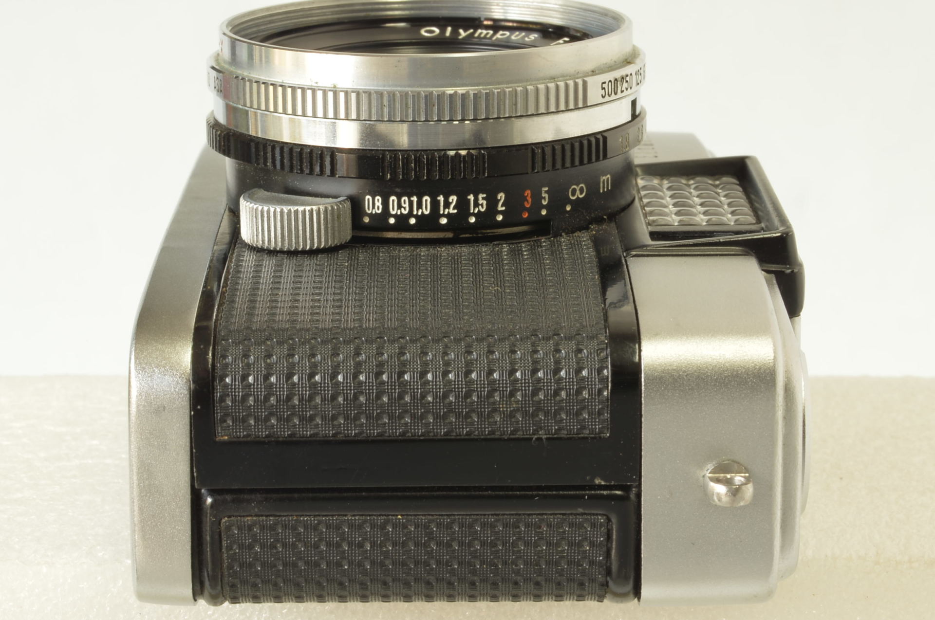 Fotocamera formato half-frame prodotta a partire dal 1962 da Olympus, dotata di un obiettivo F.Zuiko 32 mm f/1.9, il cui schema ottico è composto da 6 elementi in 4 gruppi.  Il formato “half frame” significa che su una pellicola 35 mm standard si ottengono immagini da 18 × 24 mm anziché i canonici 24 × 36 mm. Ciò significa che si ottengono 72 esposizioni su un rullo da 36 pose.  Grazie alla struttura compatta, è una fotocamera più piccola rispetto alle 35mm dell’epoca. Bellissima, cellula esaurita ma perfettamente utilizzabile poiché tempi e diaframmi sono manuali.