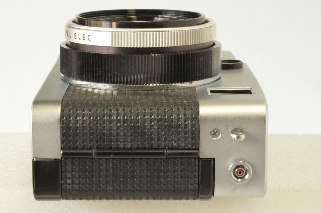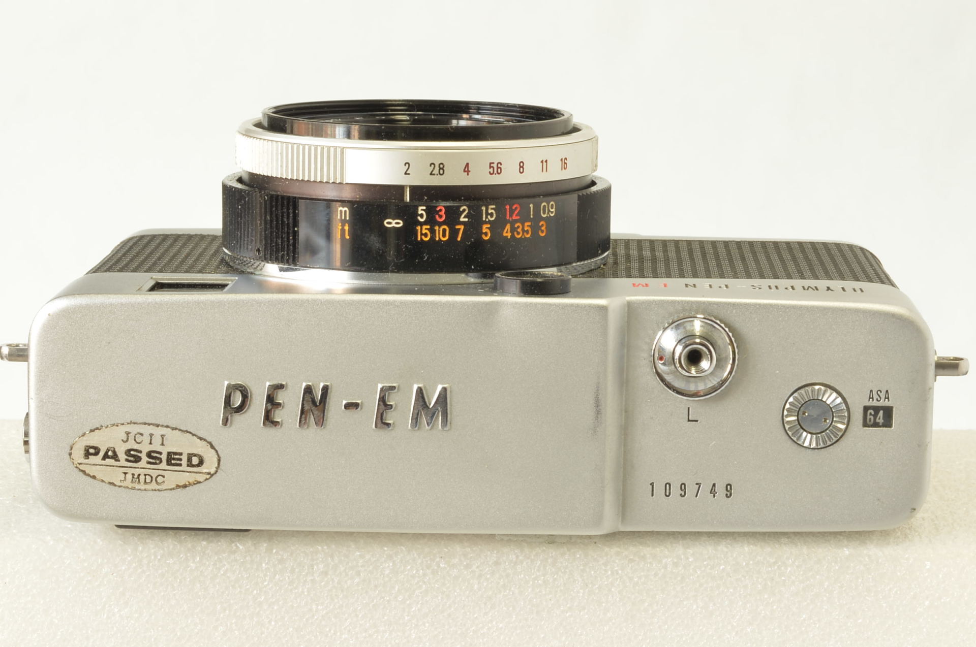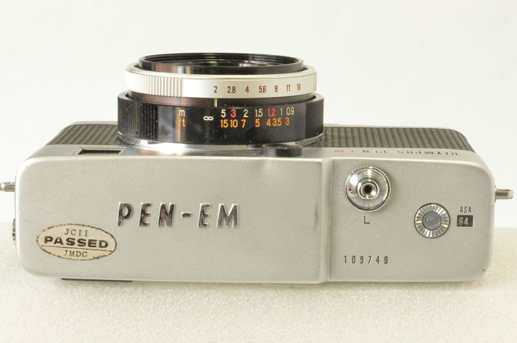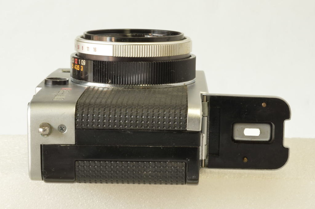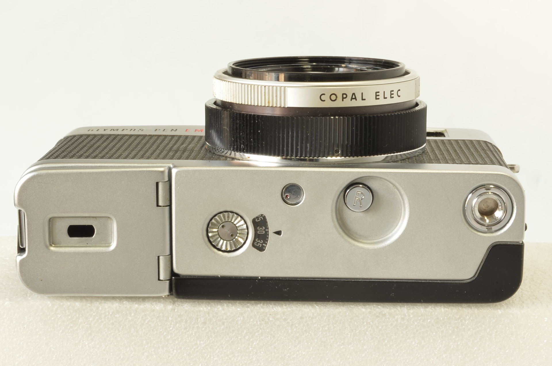 Fotocamera half-frame prodotta a partire dalla metà degli anni Sessanta da Olympus, dotata di un obiettivo F.Zuiko 35mm f/2. Il formato “half frame” significa che su una pellicola 35 mm standard si ottengono immagini da 18 × 24 mm anziché i canonici 24 × 36 mm. Ciò significa che si ottengono 72 esposizioni su un rullo da 36 pose. Grazie alla struttura compatta, è una fotocamera più piccola rispetto alle 35mm dell’epoca. In discrete condizioni. Portabatteria deteriorato dall’ossido.