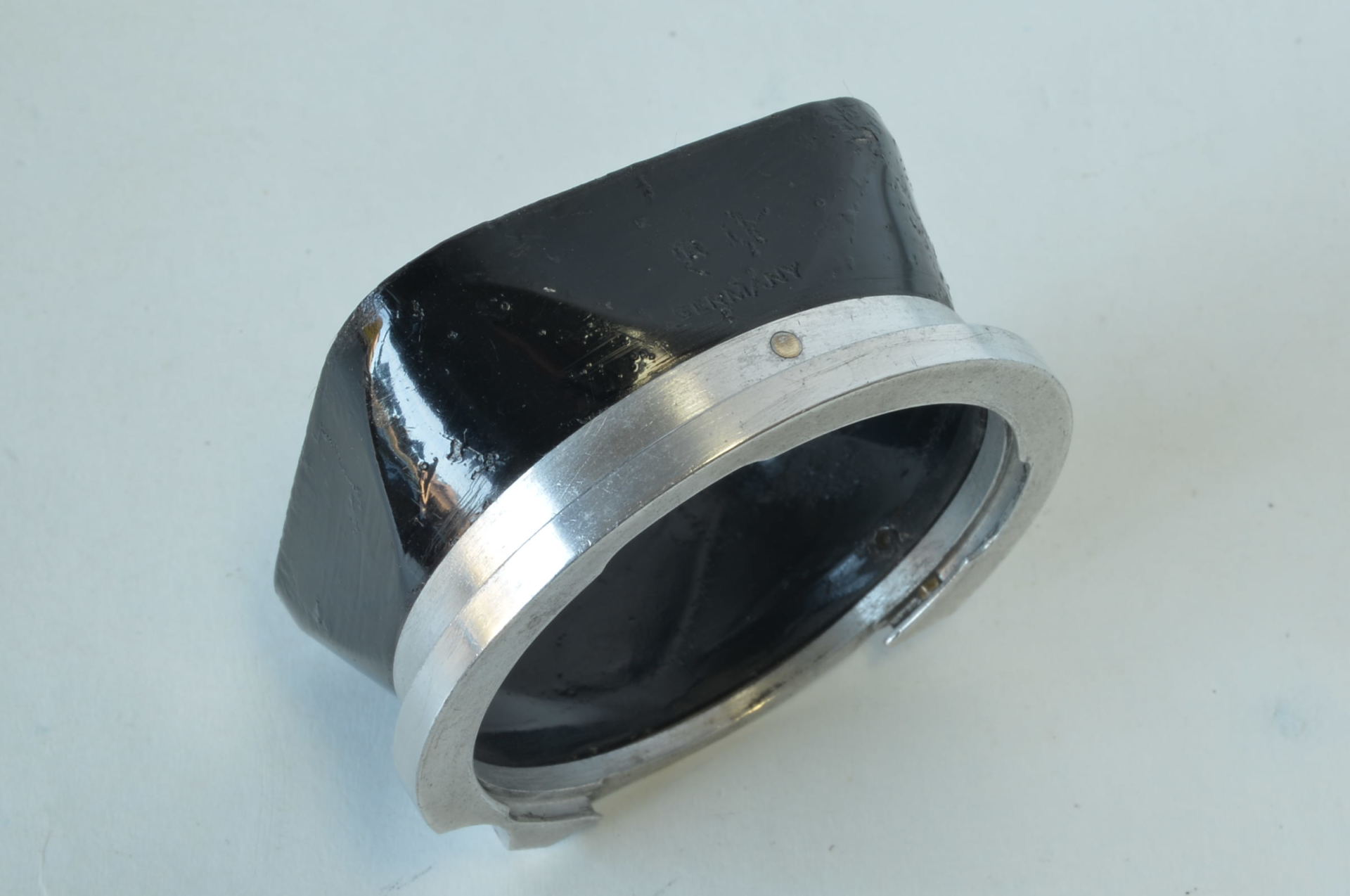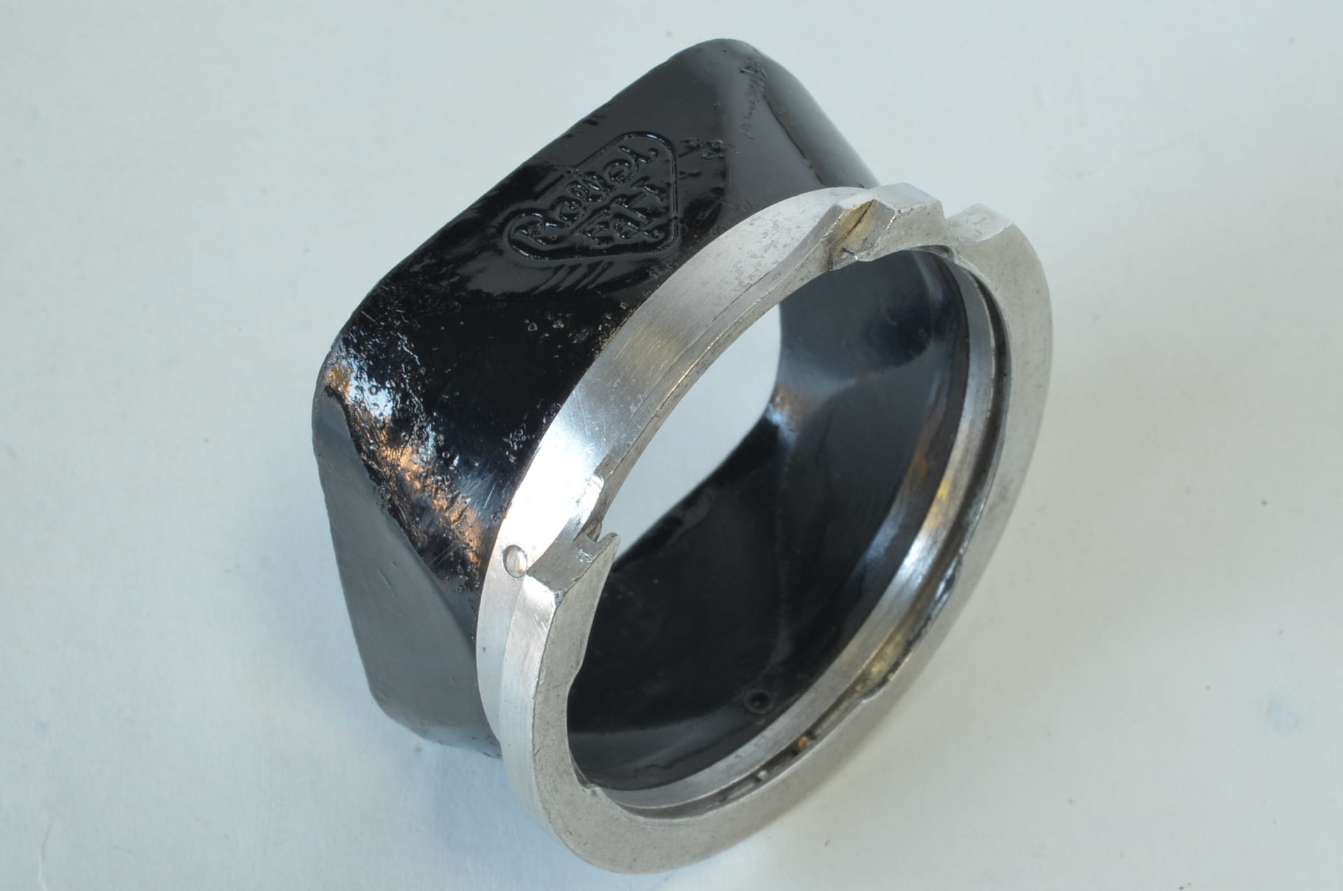Paraluce GR II per fotocamere Rolleiflex 3.5 F, pensato quindi per obiettivi con baionetta Bayonet II, cioè: Rolleiflex 3.5F, Rolleiflex 3.5E / 3.5E2 / 3.5E3, Rolleiflex 3.5 Automat (Xenotar o Planar 75mm f/3.5). In discrete condizioni, parzialmente riverniciato.