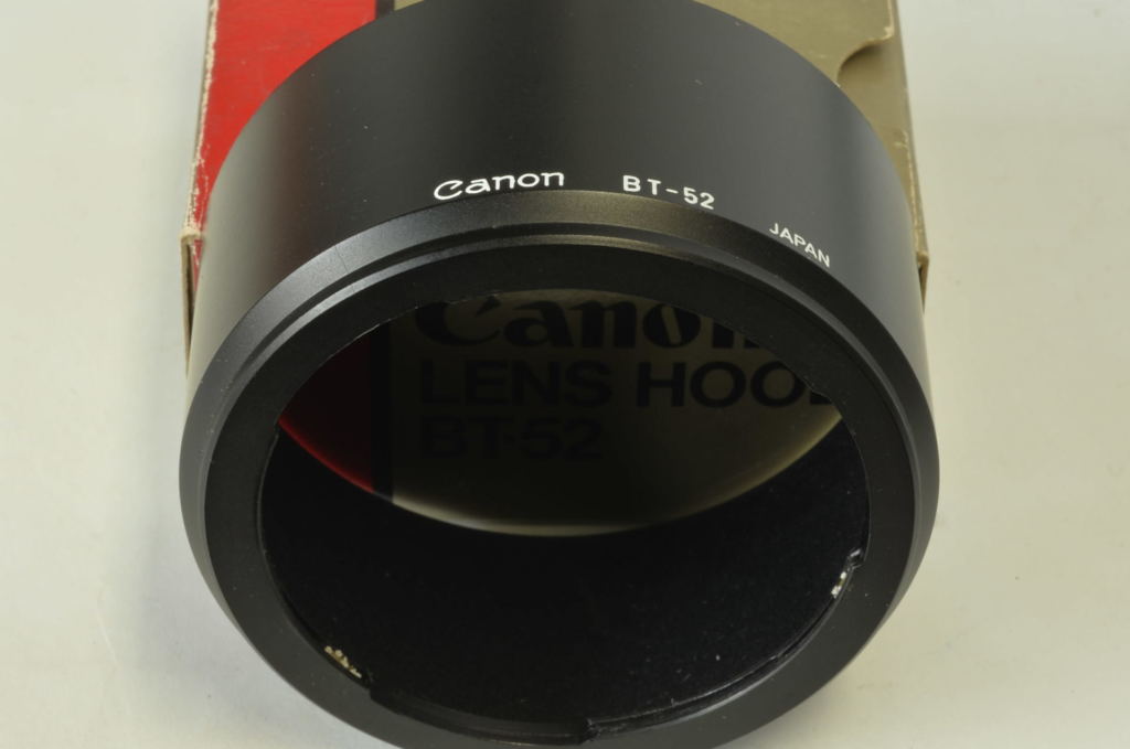 Paraluce originale Canon Lens Hood BT-52 progettato per il sistema Canon New FD (nFD), in particolare per il Canon New FD 85mm f/1.8 e il Canon New FD 100mm f/2.8. Completo di scatola originale, come nuovo.