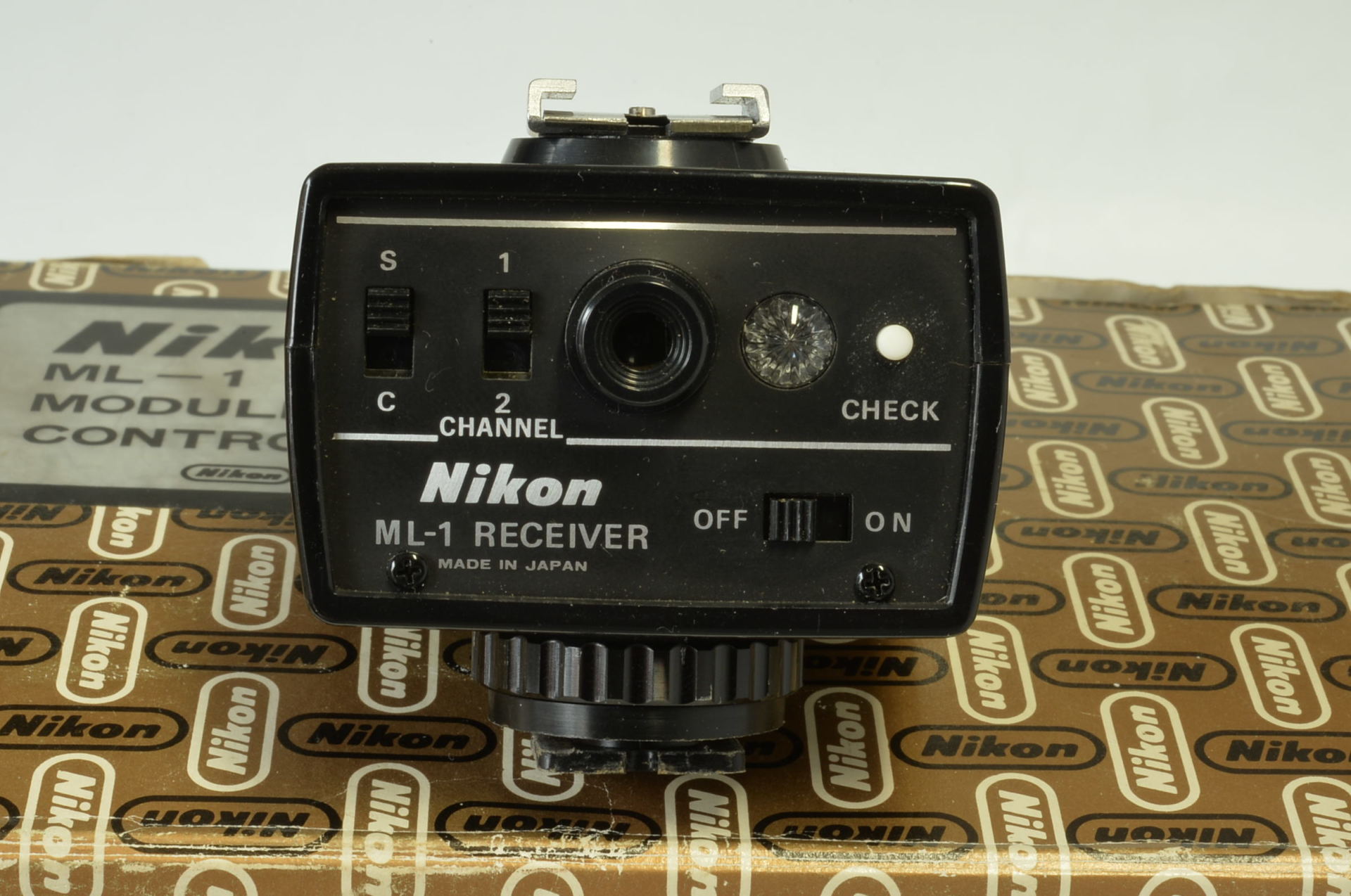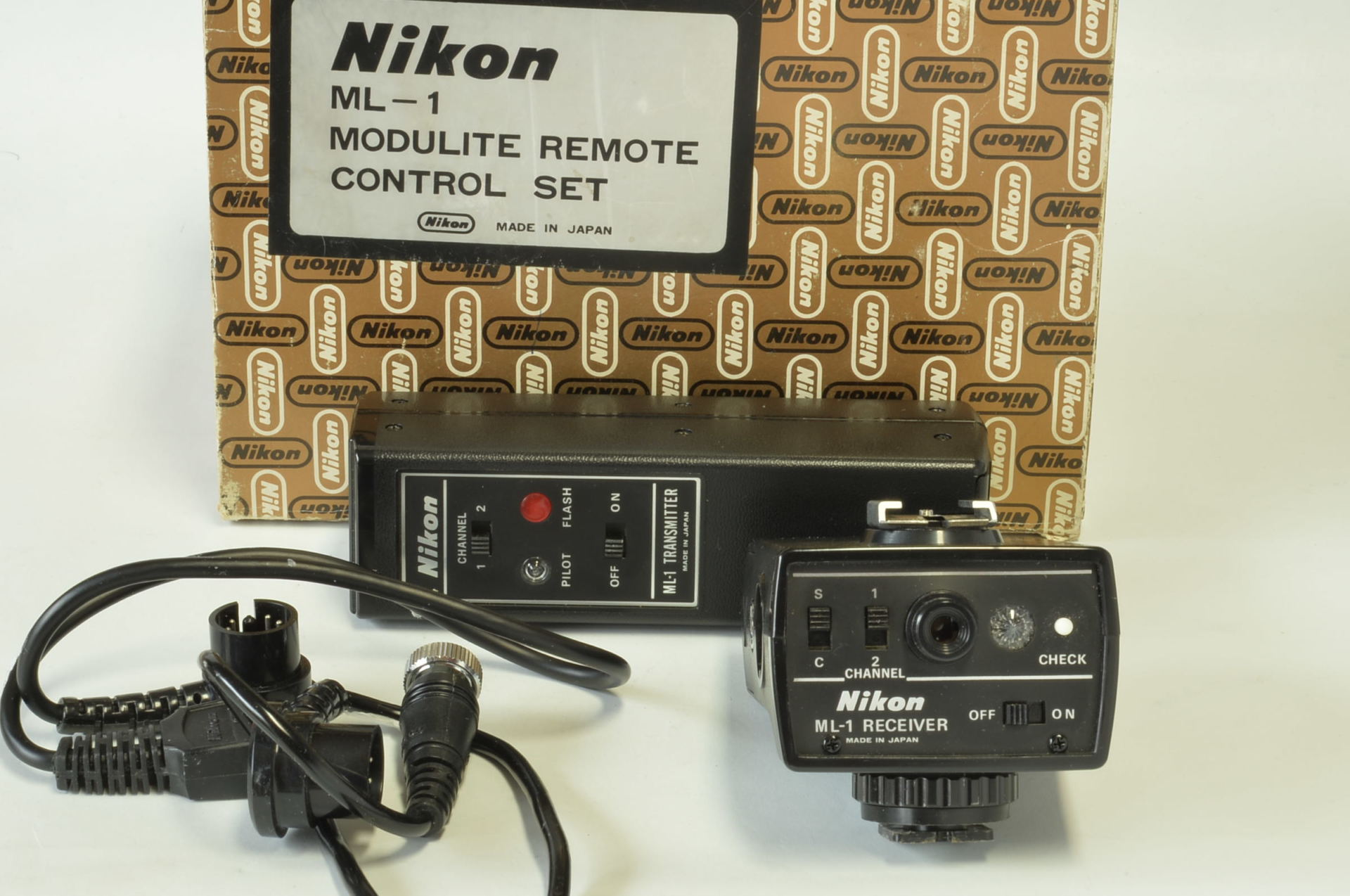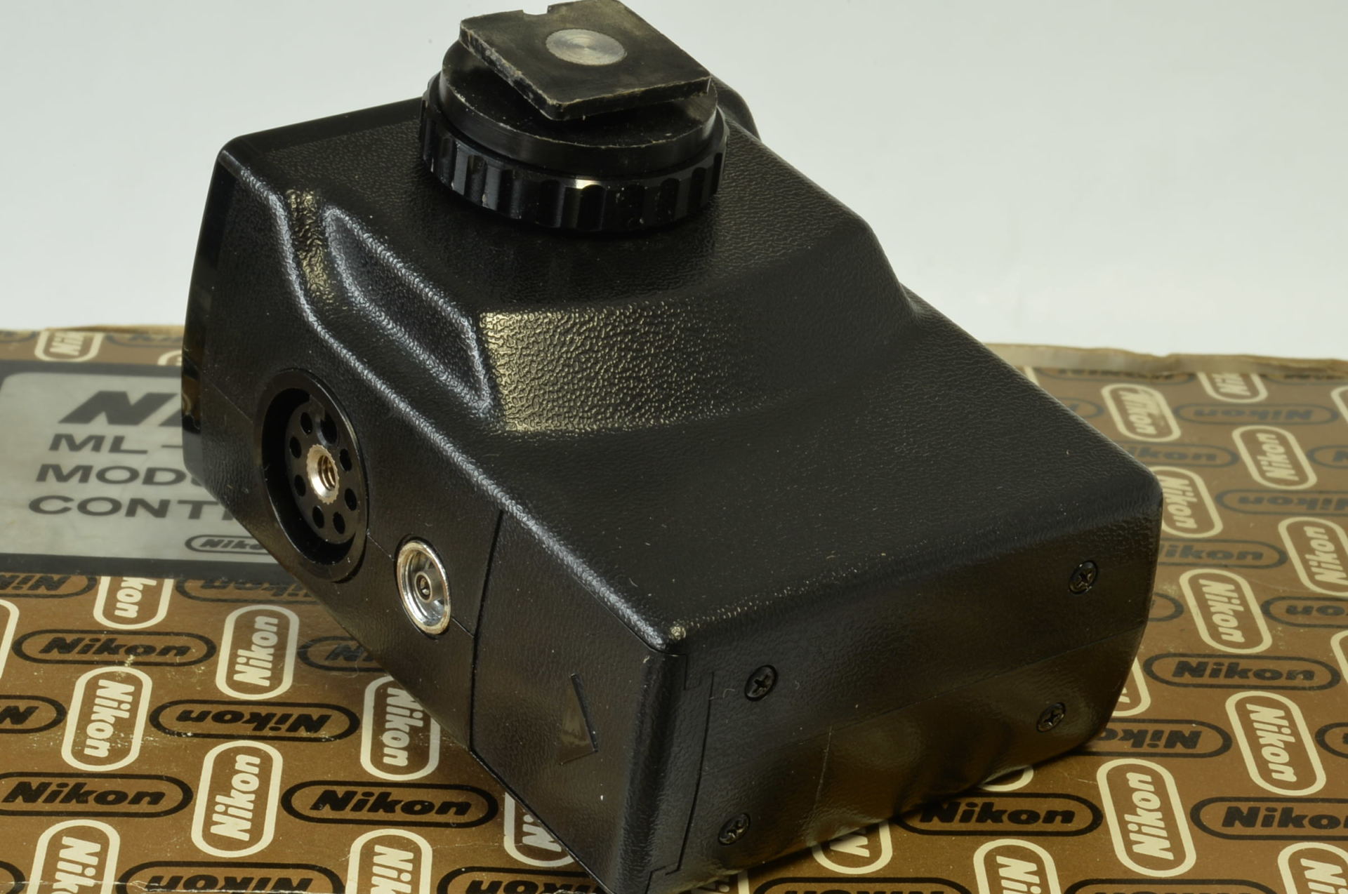 Scatto a distanza ML-1 a infrarossi IR, set compreso di trasmettitore e ricevitore per comandare la fotocamera fino a 100 metri. Come nuovo, completo di custodie in pelle originali.