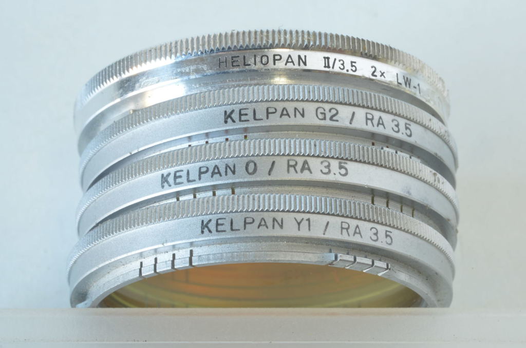Set di 4 filtri- HELIOPAN II / 3.5 2x LW-1, KELPAN G2 / RA 3.5, KELPAN 0 / RA 3.5, KELPAN Y1 / RA 3.5 per Rolleiflex 3.5 F