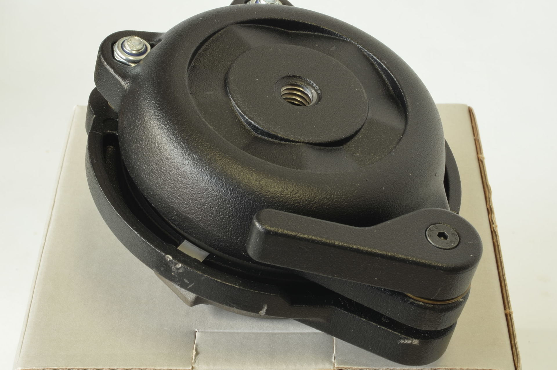 Testa di livellamento Manfrotto 3/8′ in alluminio, da usare con i treppiedi non dotati di regolazione livello, con raggio di movimento di 10°. L’accessorio va montato tra il treppiedi e la testa. Molto bella, completa di scatola originale.