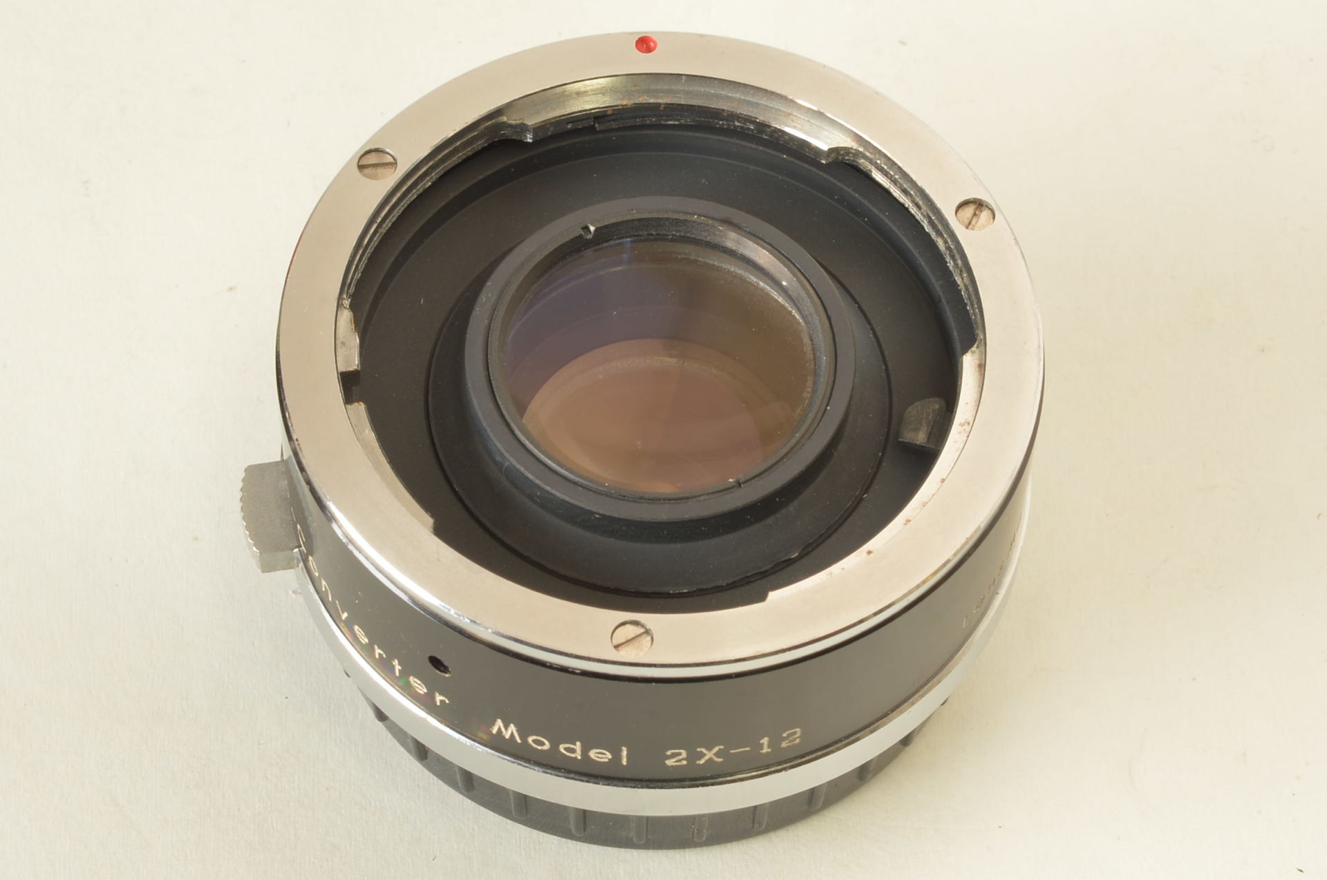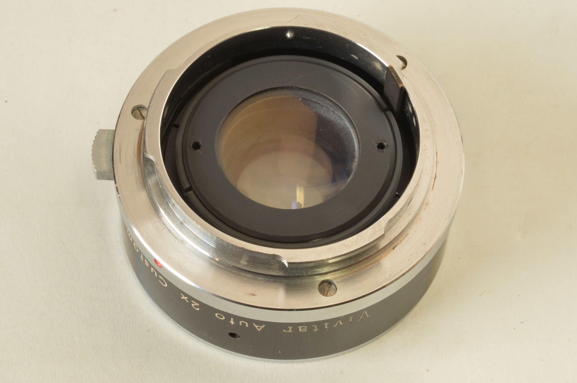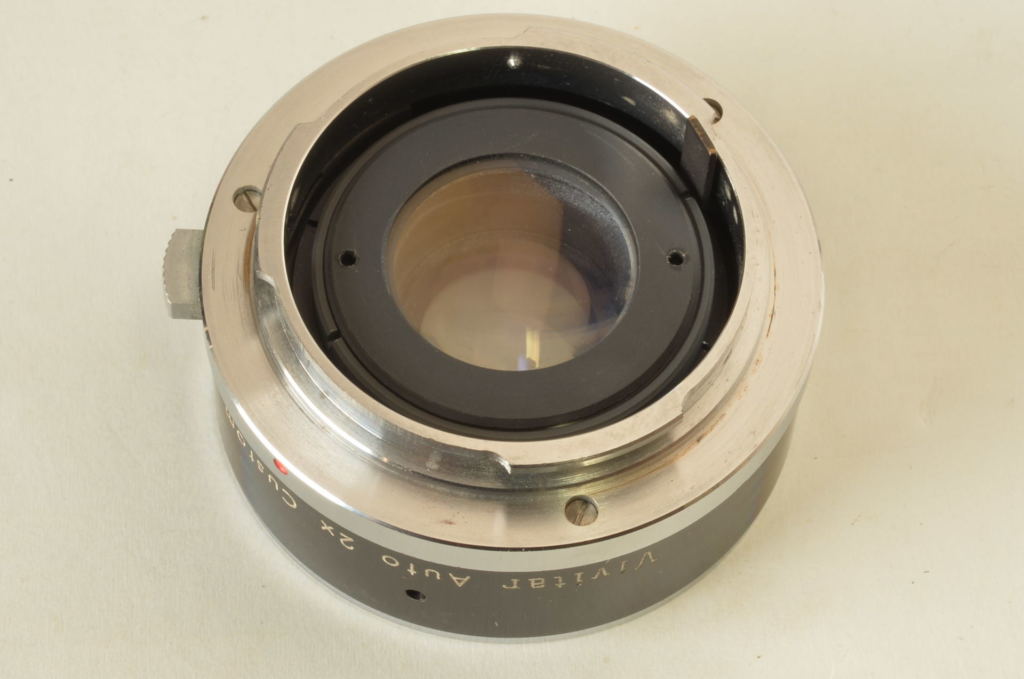 Raro Tele-Converter Vivitar con attacco Olympus Pen. Questo accessorio si monta tra il corpo macchina e l’obiettivo. La sua funzione è raddoppiare (“2x”) la lunghezza focale dell’obiettivo cui è attaccato. Molto bello.