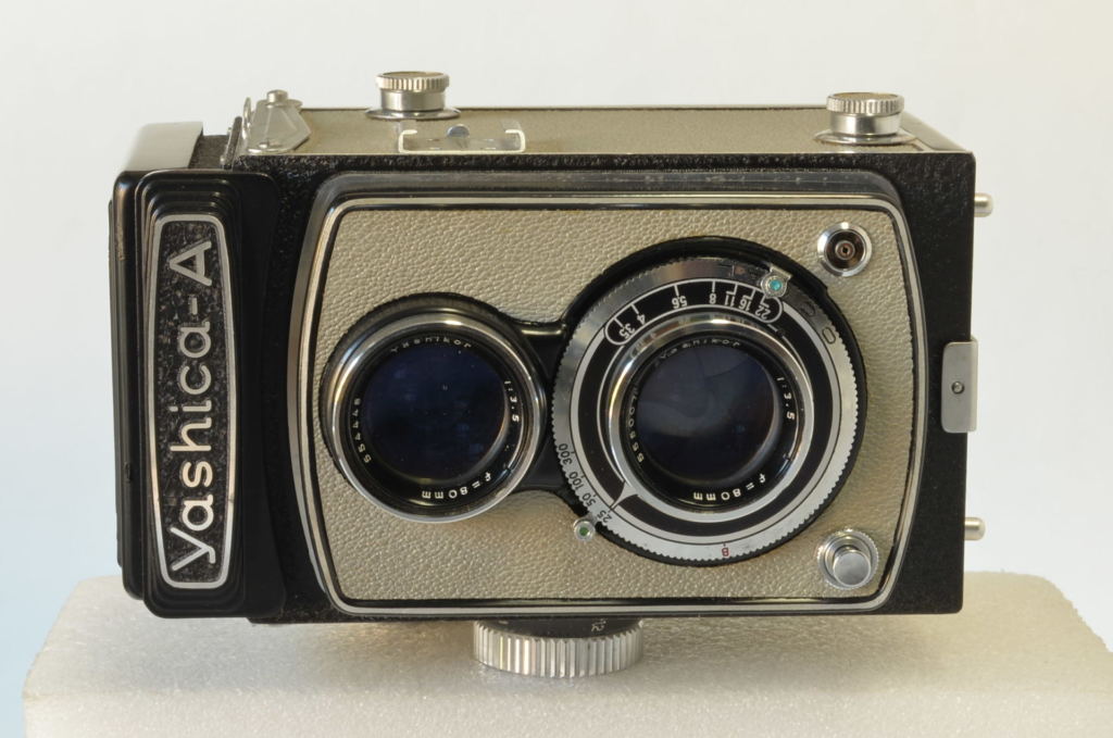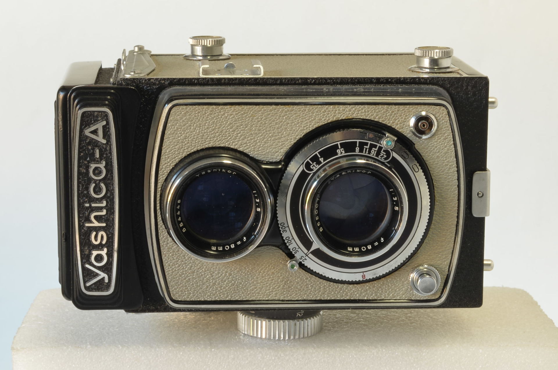 Fotocamera medio formato (6×6) prodotta da Yashica a partire dal 1956, dotata di due ottiche Yashikor 80 mm f/3,5 con schema ottico di 3 elementi in 3 gruppi (tipo triplet), una utilizzata come ottica di ripresa e una come ottica di visione. La fotocamera è dotata di un otturatore Copal con tempi da 1 s a 1/300 s + posa B. La Yashica – A usa pellicola 120, ancora facilmente reperibile. Bellissima, completa di custodia originale e tappo anteriore.